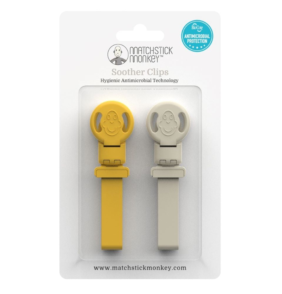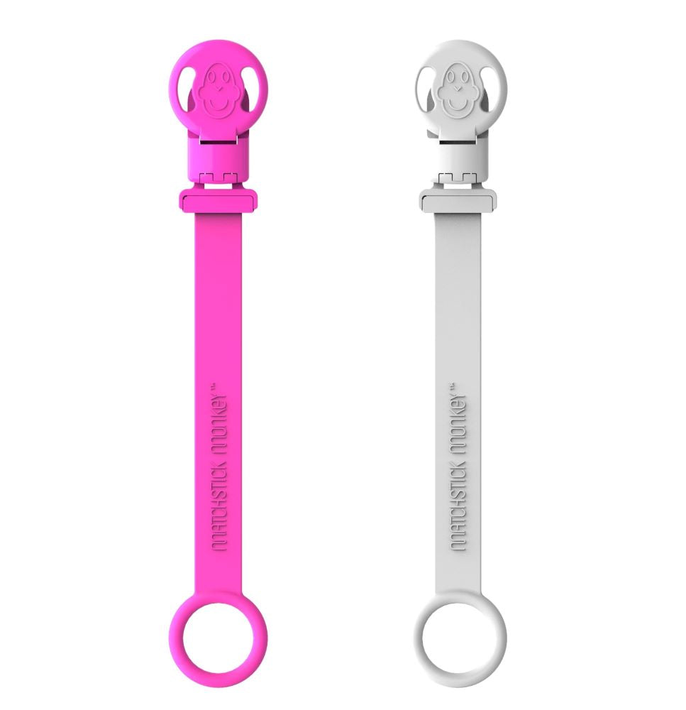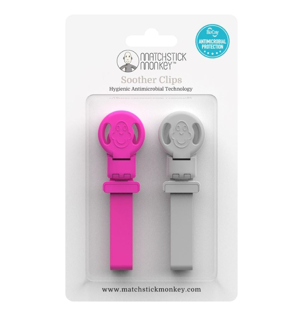 Matchstick Monkey Double Soother Clips - Pink & Cool Grey
