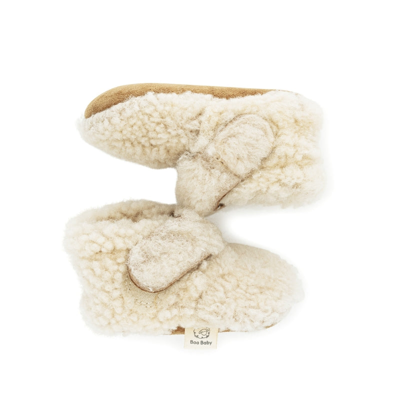 Baa Baby Teddy Merino Boucle Booties - Oat