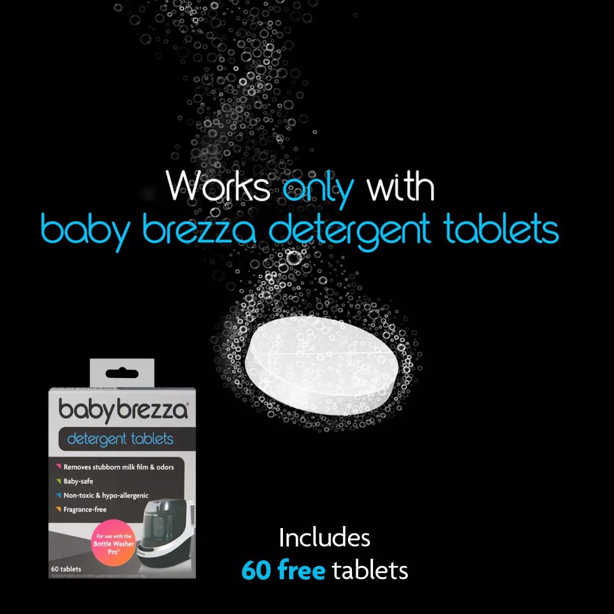 - Works only with baby-safe Baby Brezza Detergent Tablets (free 60 pack included)