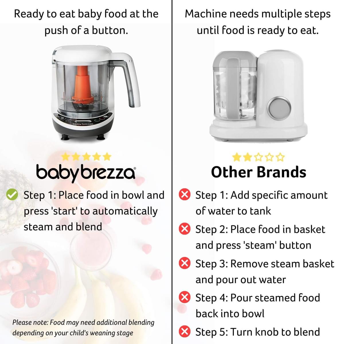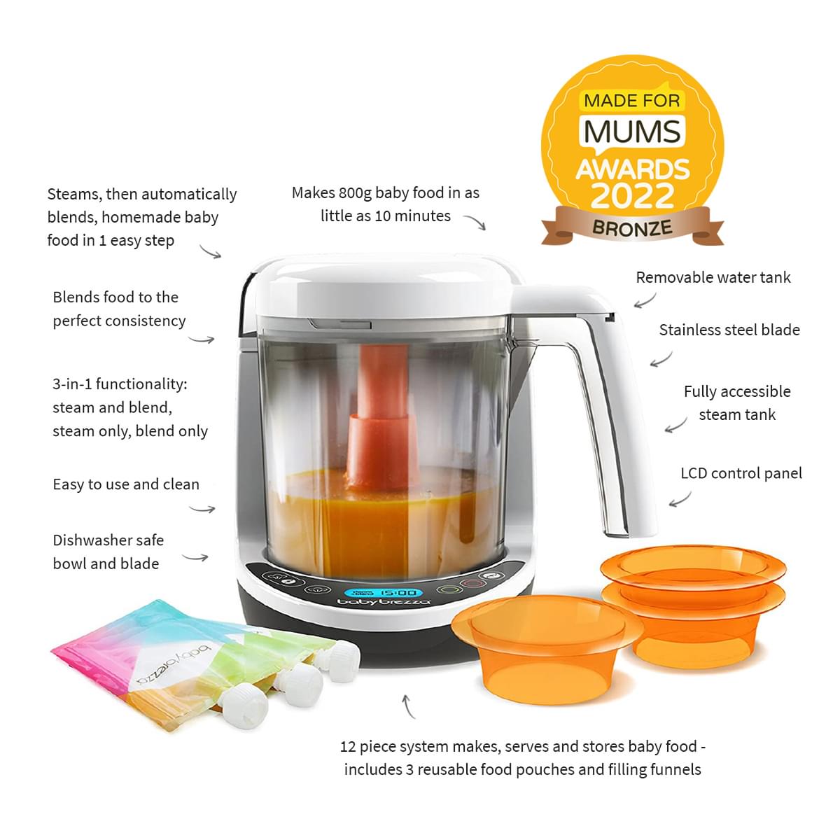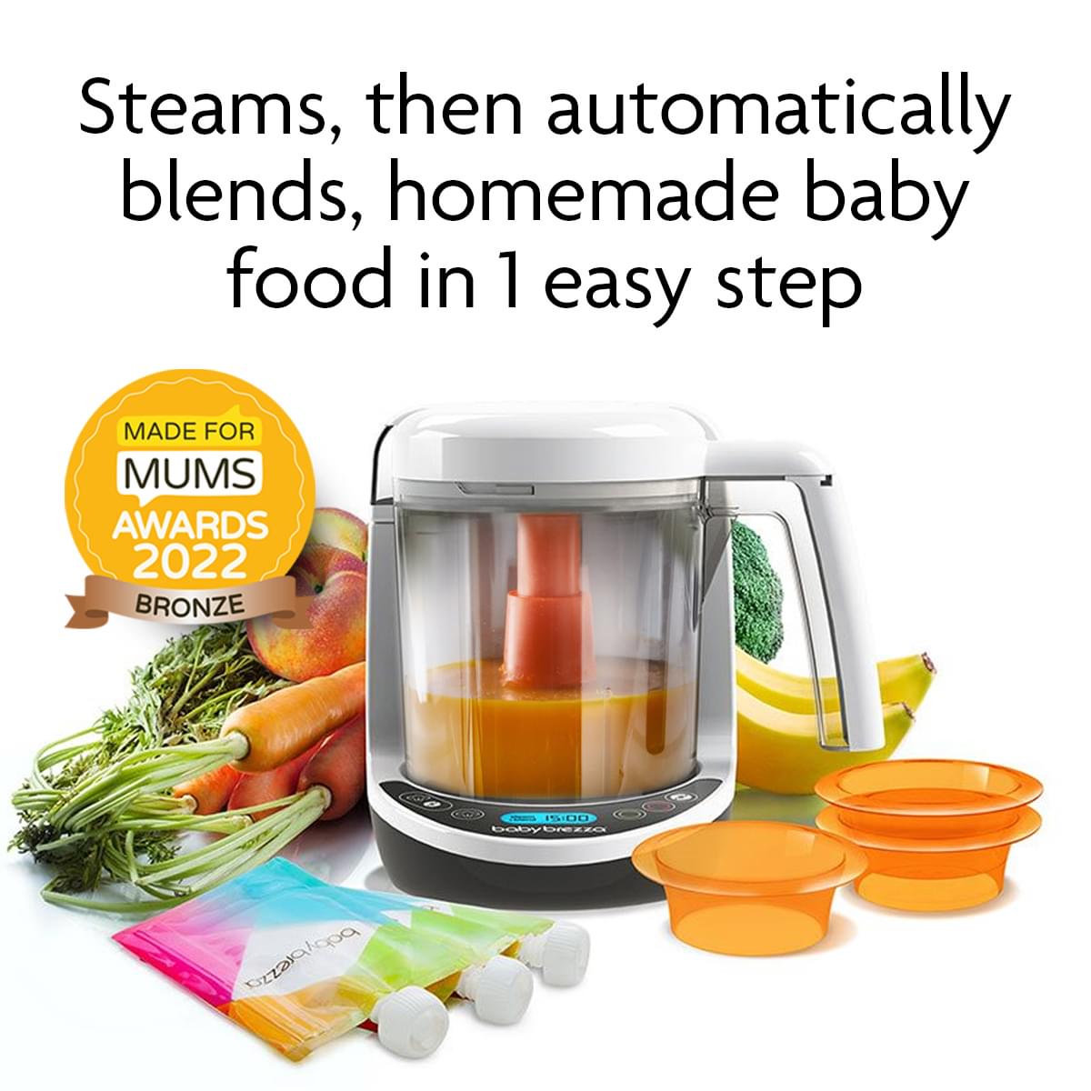 - One step process which automatically steams, then blends homemade baby food in one easy step, which means there’s no opportunity to make a mess when transferring the food between machines.