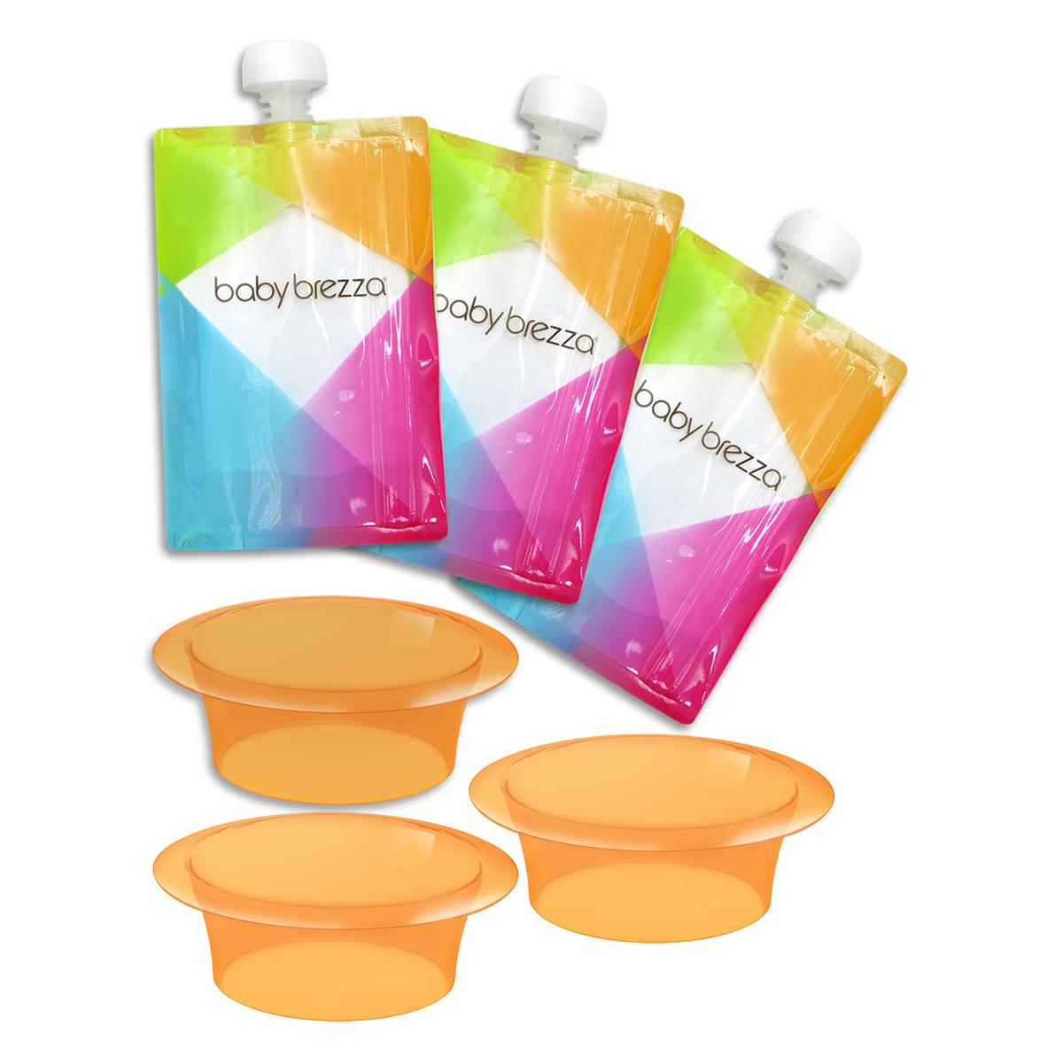 - Everything you need to make, store and serve baby food. The three baby food pouches provided are perfect both for feeding and for storing as they are suitable for freezing and are even dishwasher safe.