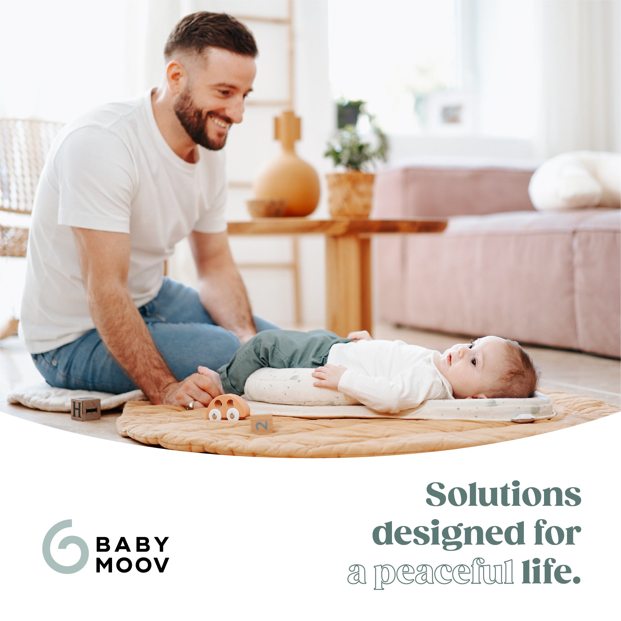 • Baby lounger for home and away: non-restrictive to soothe, settle + support