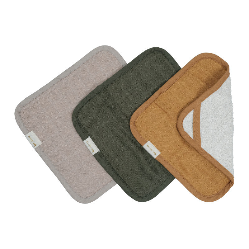 Keep your little one fresh and clean with Fabelab's practical washcloth. The washcloth has a beautiful muslin on the one side and soft, cotton terry on the back side to give your little one a smooth bath time experience. This set includes three washcloths in earth colours.