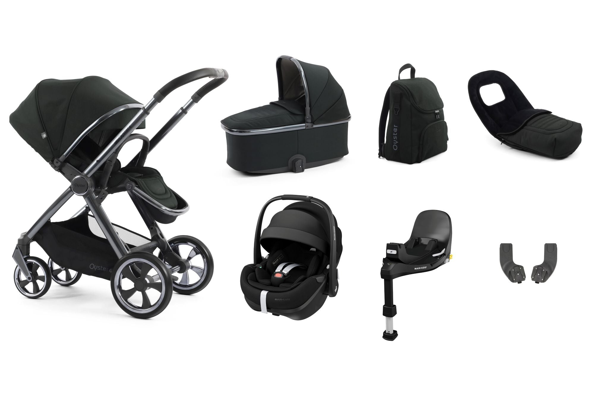 Babystyle Oyster 4 Luxury Travel System Bundle with Maxi Cosi Pebble 360 Pro V2 and Familyfix 360 Pro - Black Olive