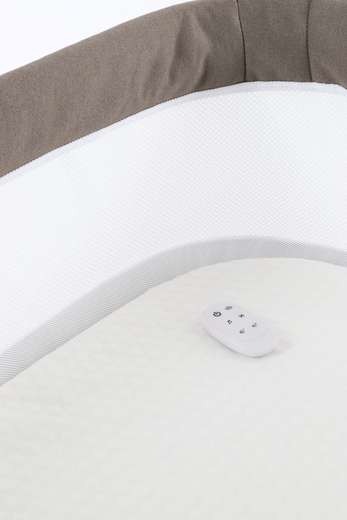 - Crib side includes pocket for remote storage;