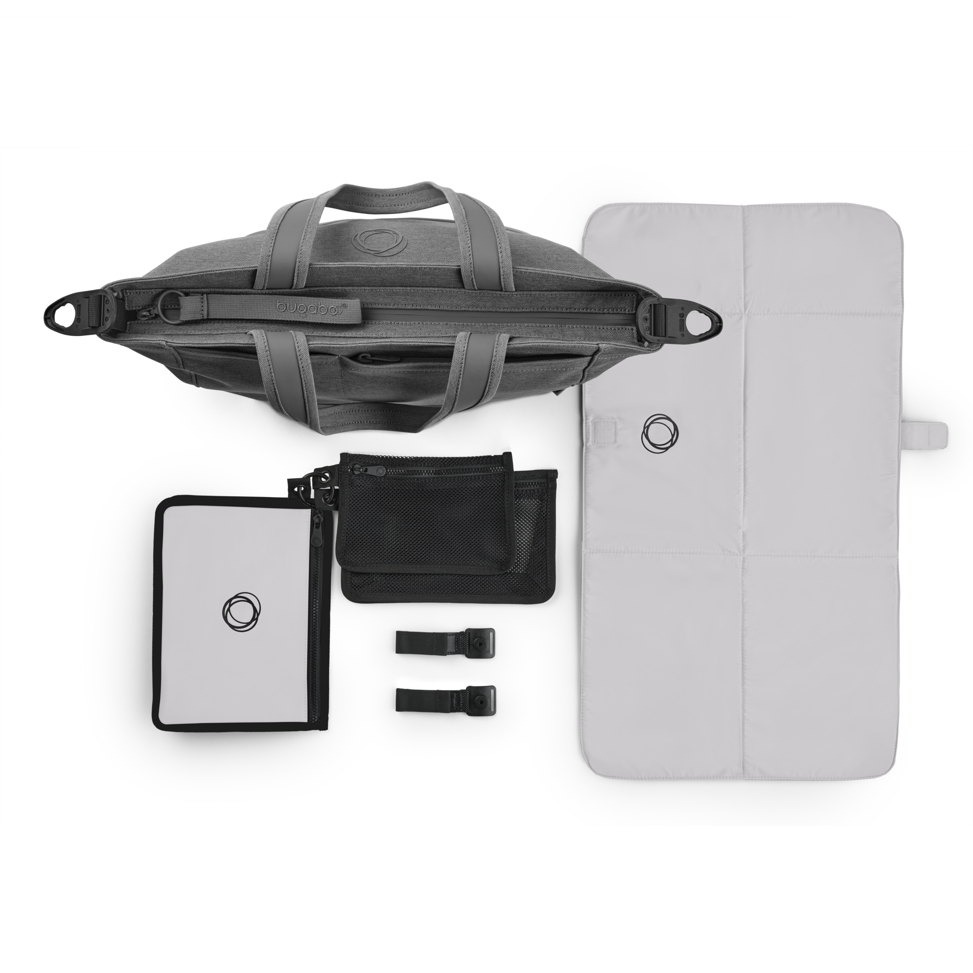With the spacious compartments, you can bring whatever your baby might need. The water-repellent high-quality fabric on the outside makes it spill-proof, while the two wipe-clean inside compartments are perfect for separating wet from dry. To store and quickly reach smaller items, use one of the three clutches that come with the changing bag, or reach for the changing mat for changes on the go. Compatibility: Thanks to the universal adapters and integrated attachment hooks, the changing bag is compatible with all Bugaboo pushchairs (except the Bugaboo Ant & Bugaboo Runner).