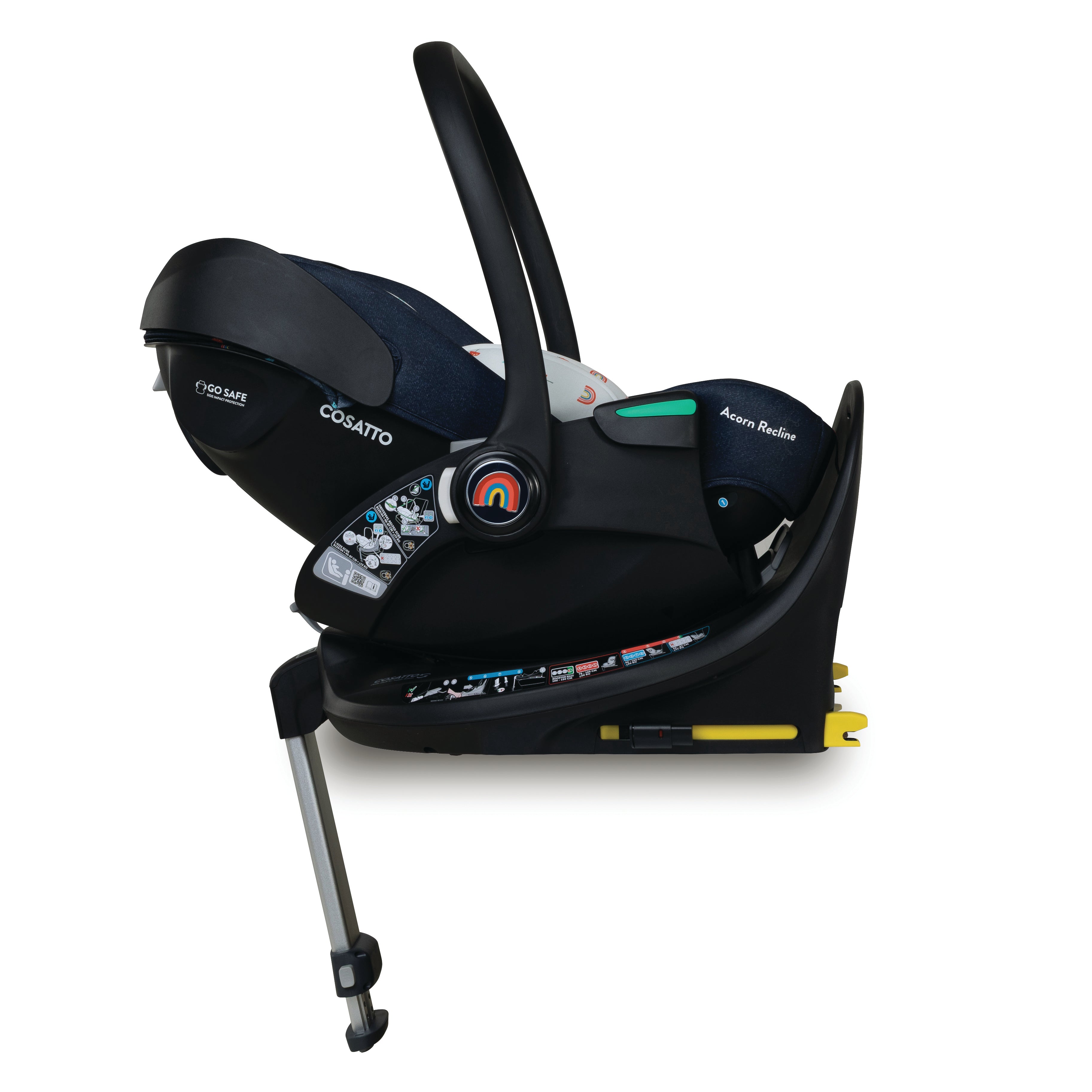 - ISOFIX (When paired with the Acorn 2 Rotating Family Base) and can be fitted with standard 3-point seatbelt