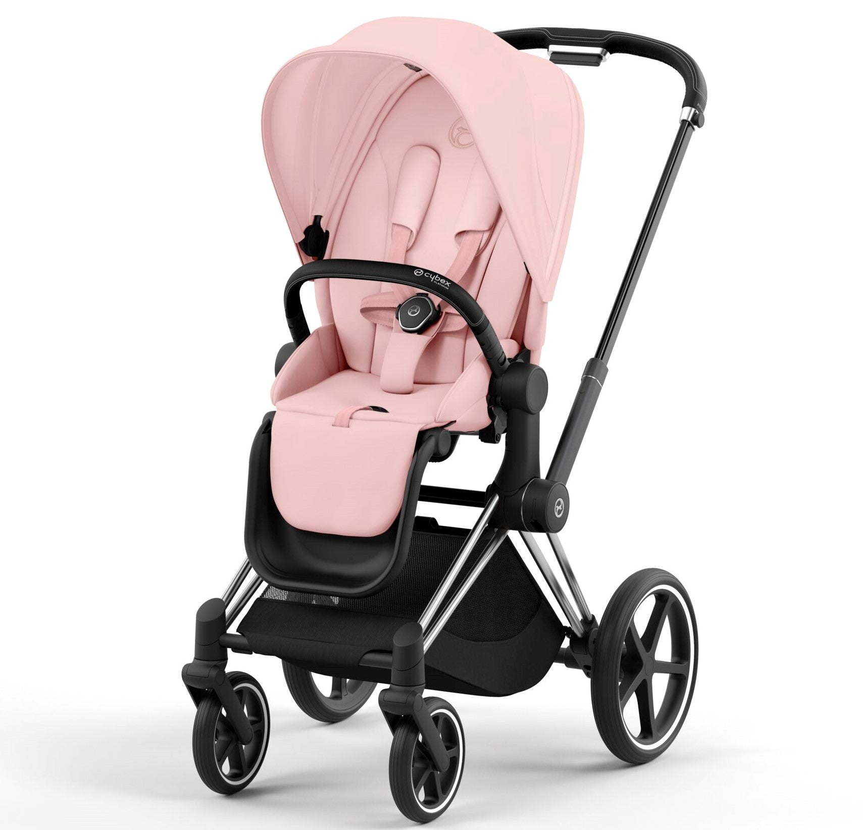 Cybex Priam Travel System Bundle - Chrome Black/Peach Pink