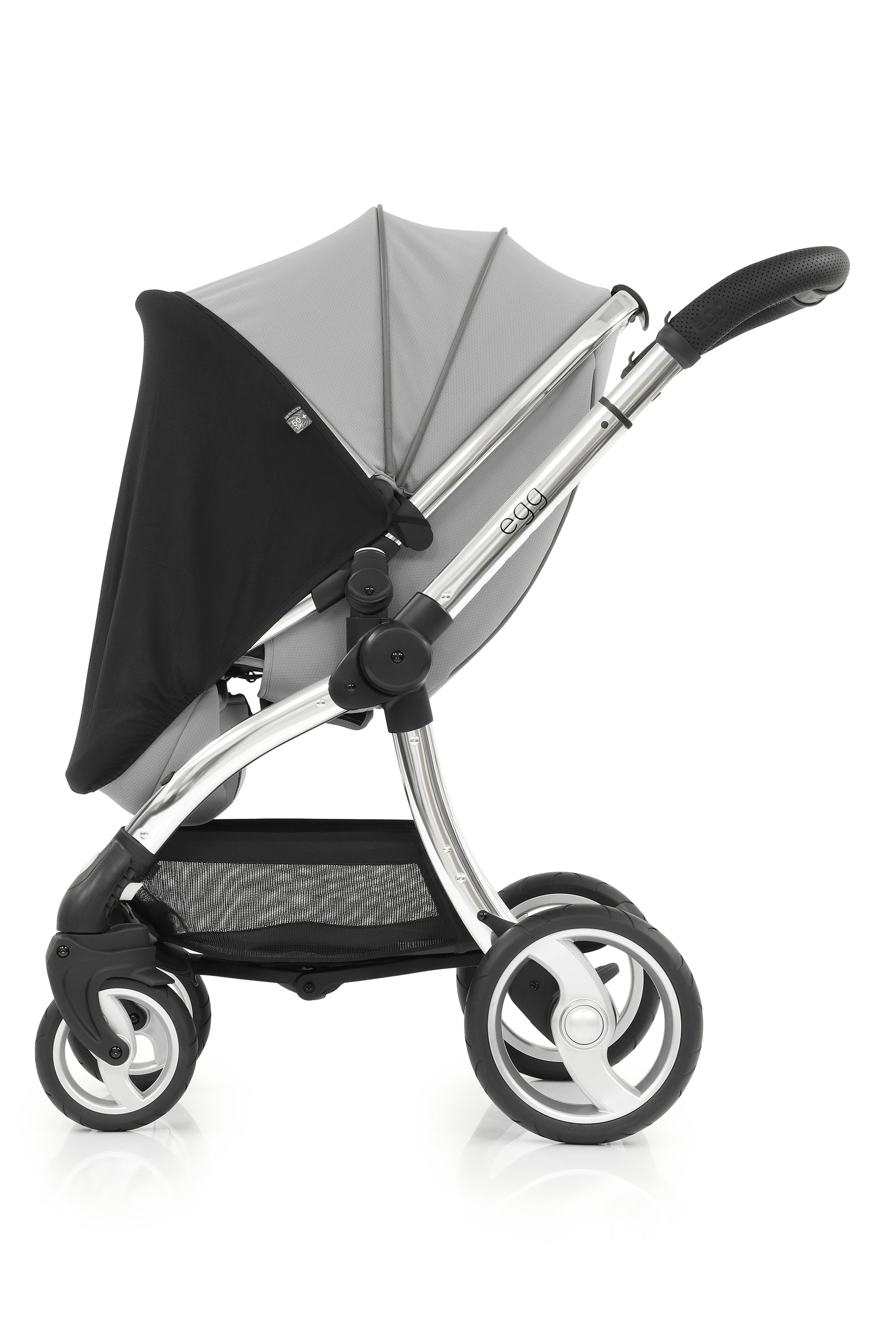 Protect your little one from harmful UVA & UVB rays (50+) inside your Egg or Egg 2 Stroller seat thanks to this universal Egg Sunshade. Simply fix to the pushchair frame using the elasticated loops on either side, hooking around the hood and calf-rest. This compact sunshade can be stored in your shopping basket, or calf-rest pocket, when it’s not in use.