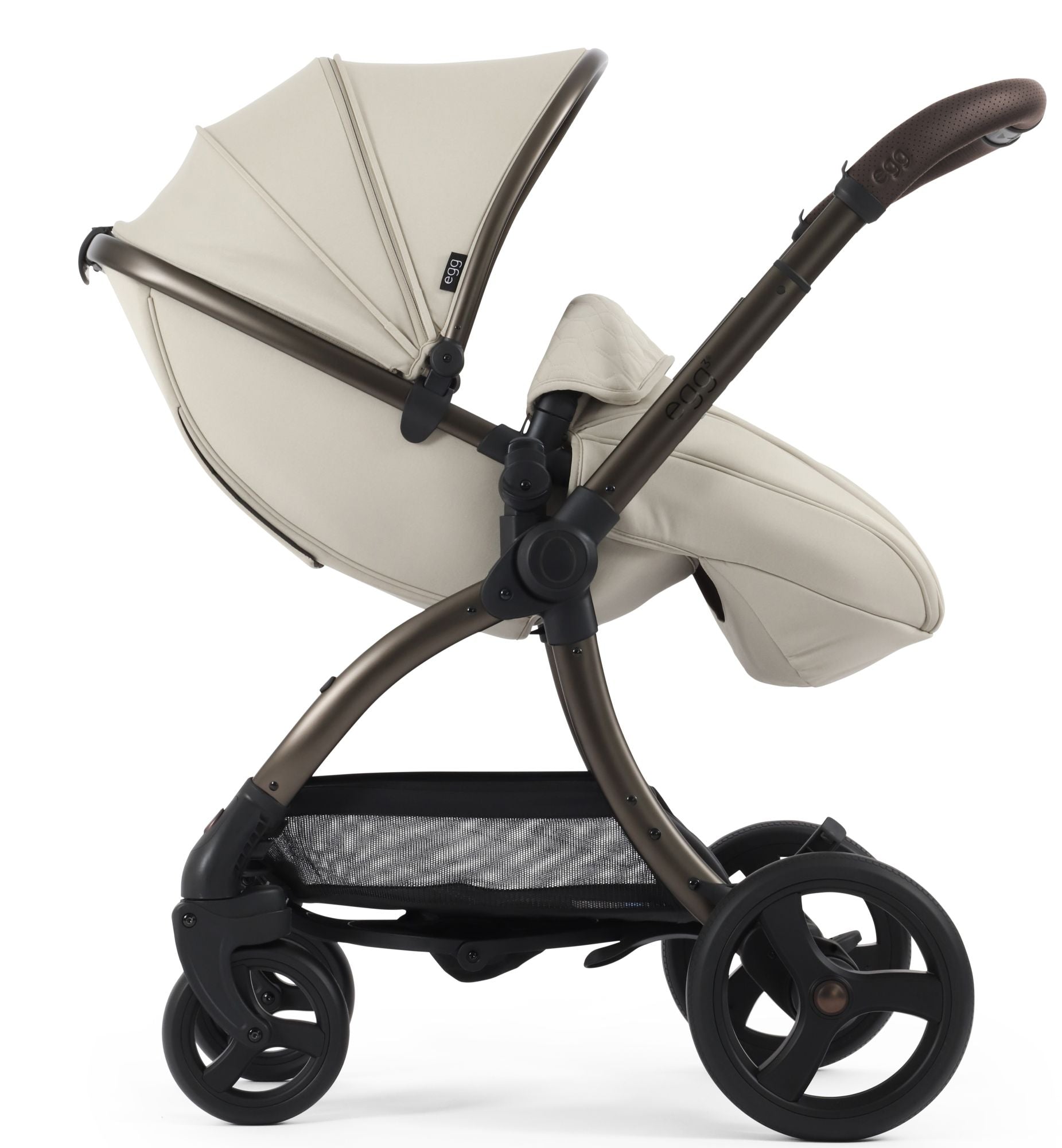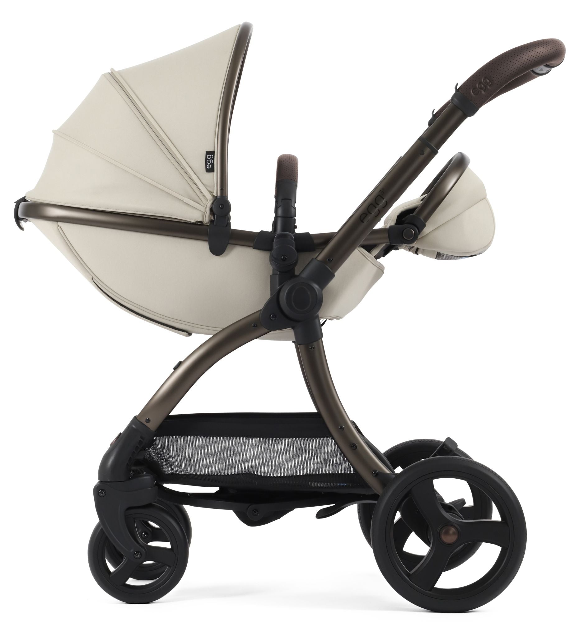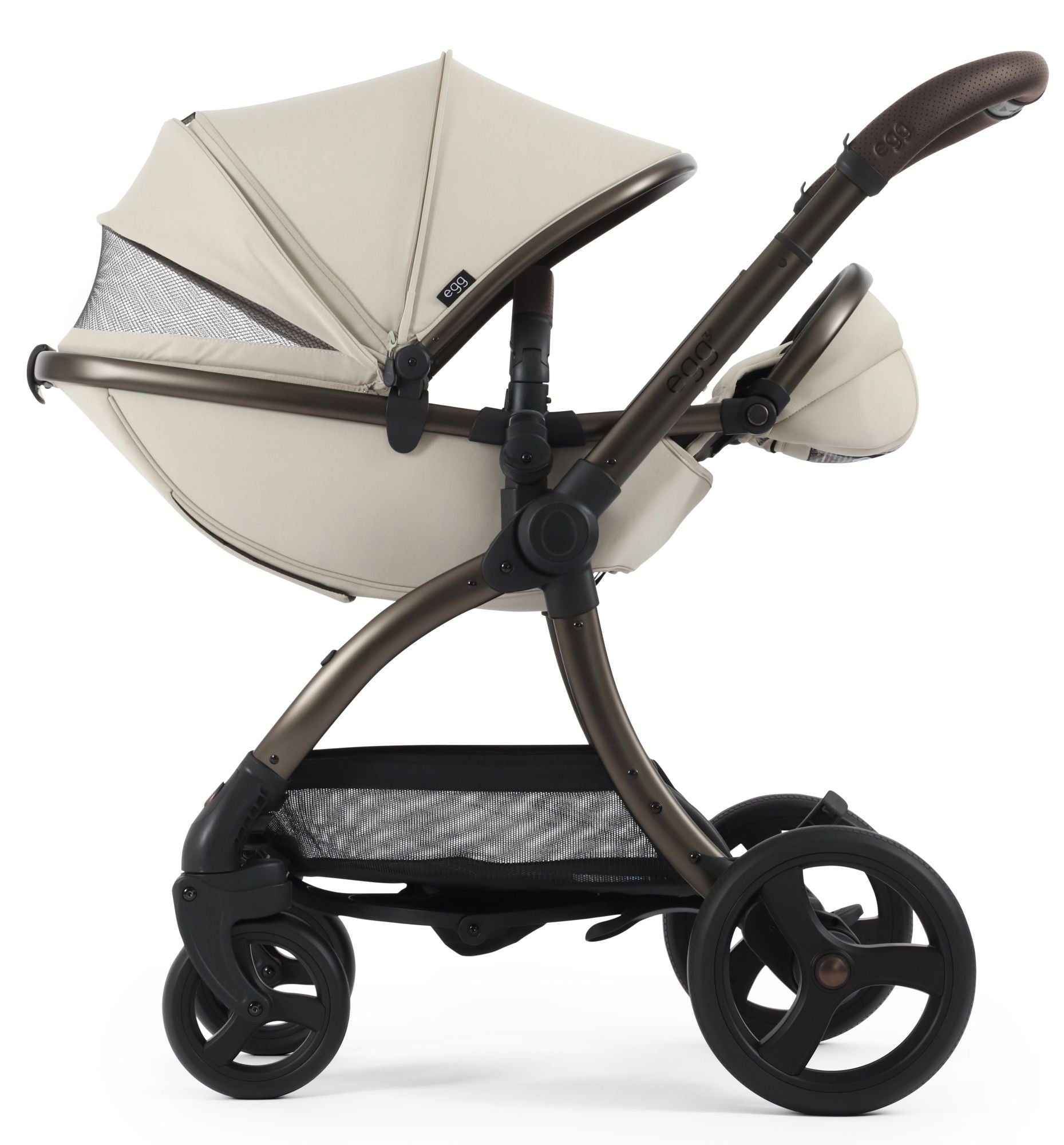 - Stroller includes: Rain cover, insect net, apron and reversible fleece liner. Suitable from 6 months to 25kg (from birth with the egg3® carrycot).