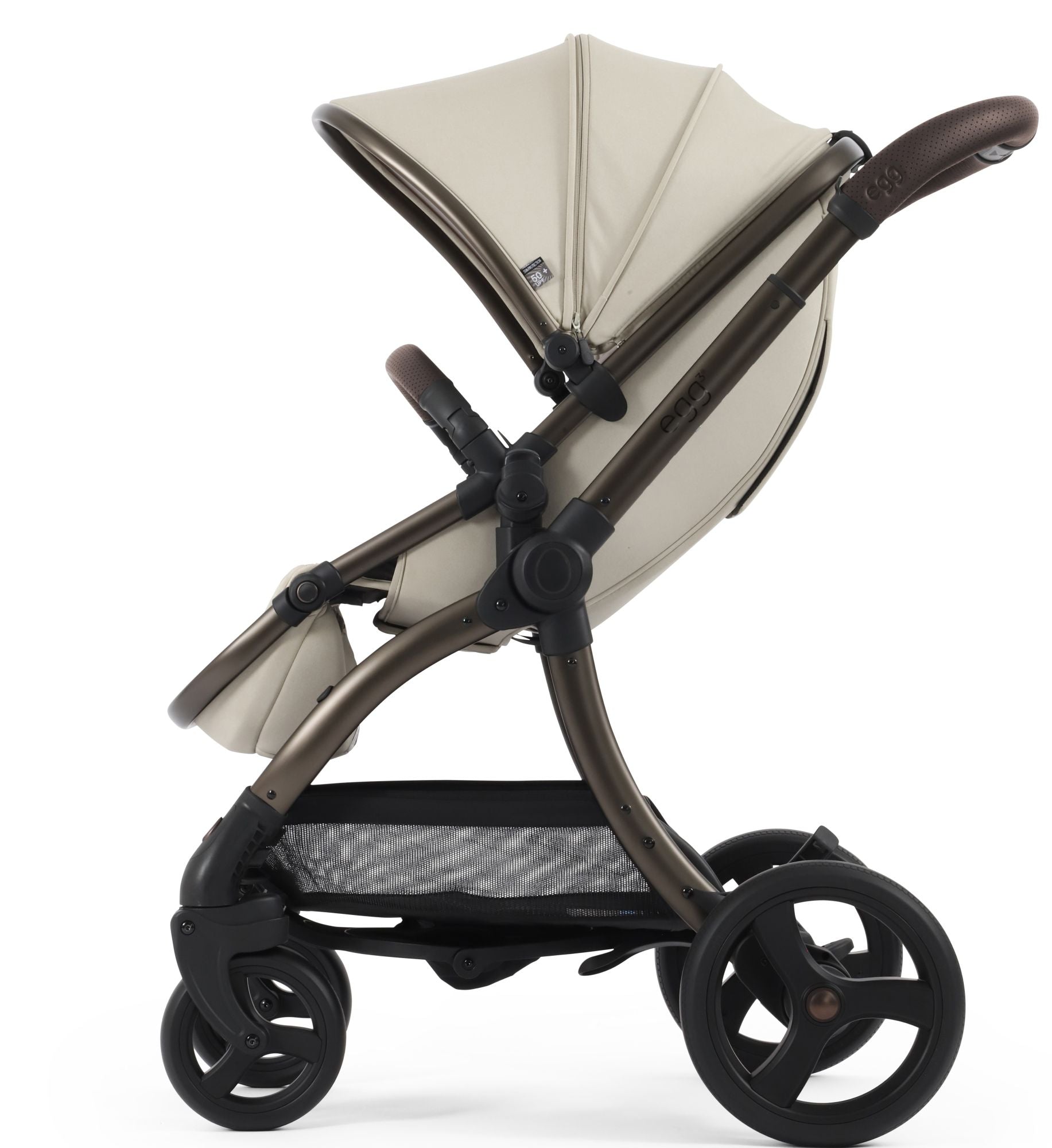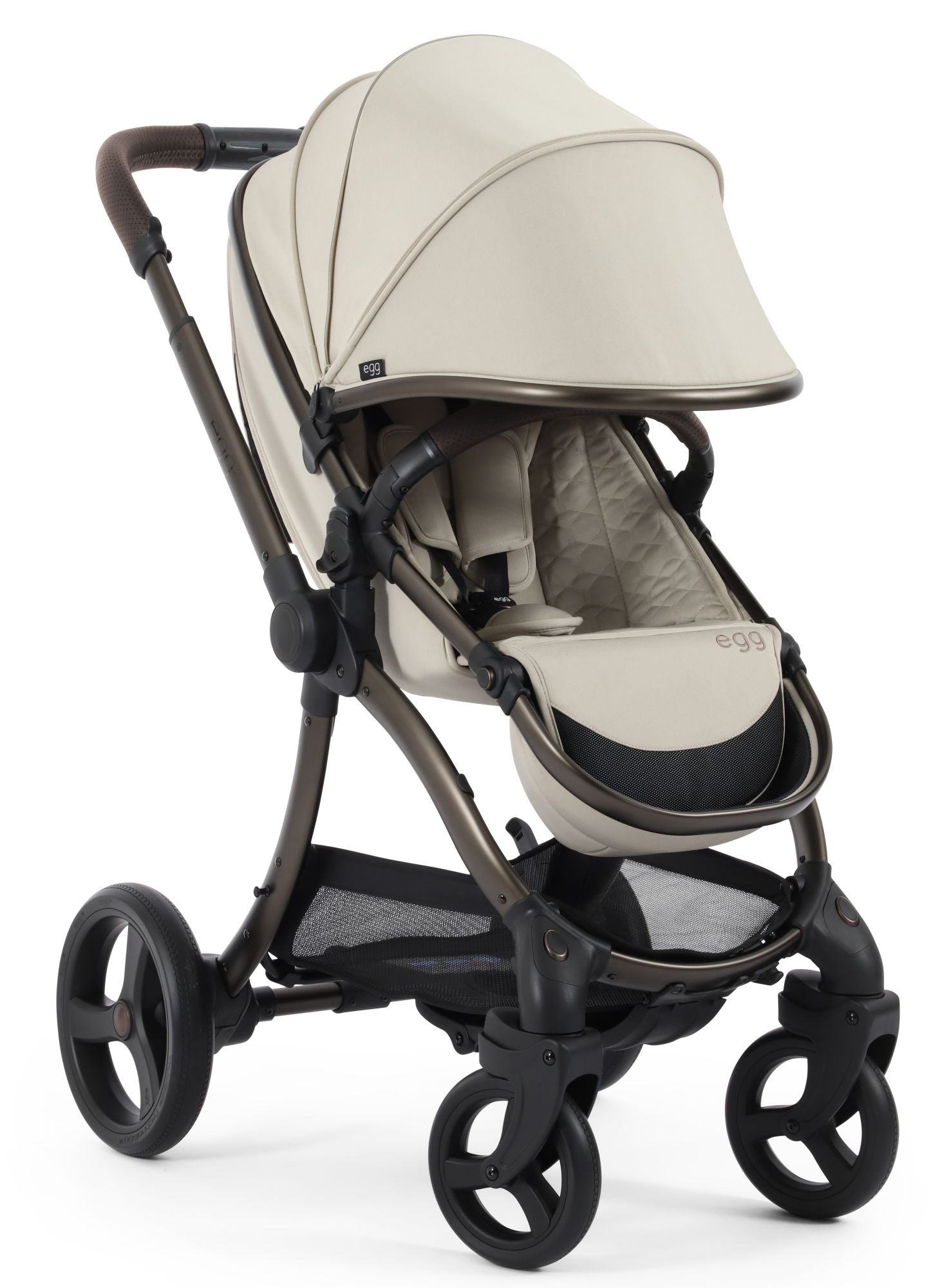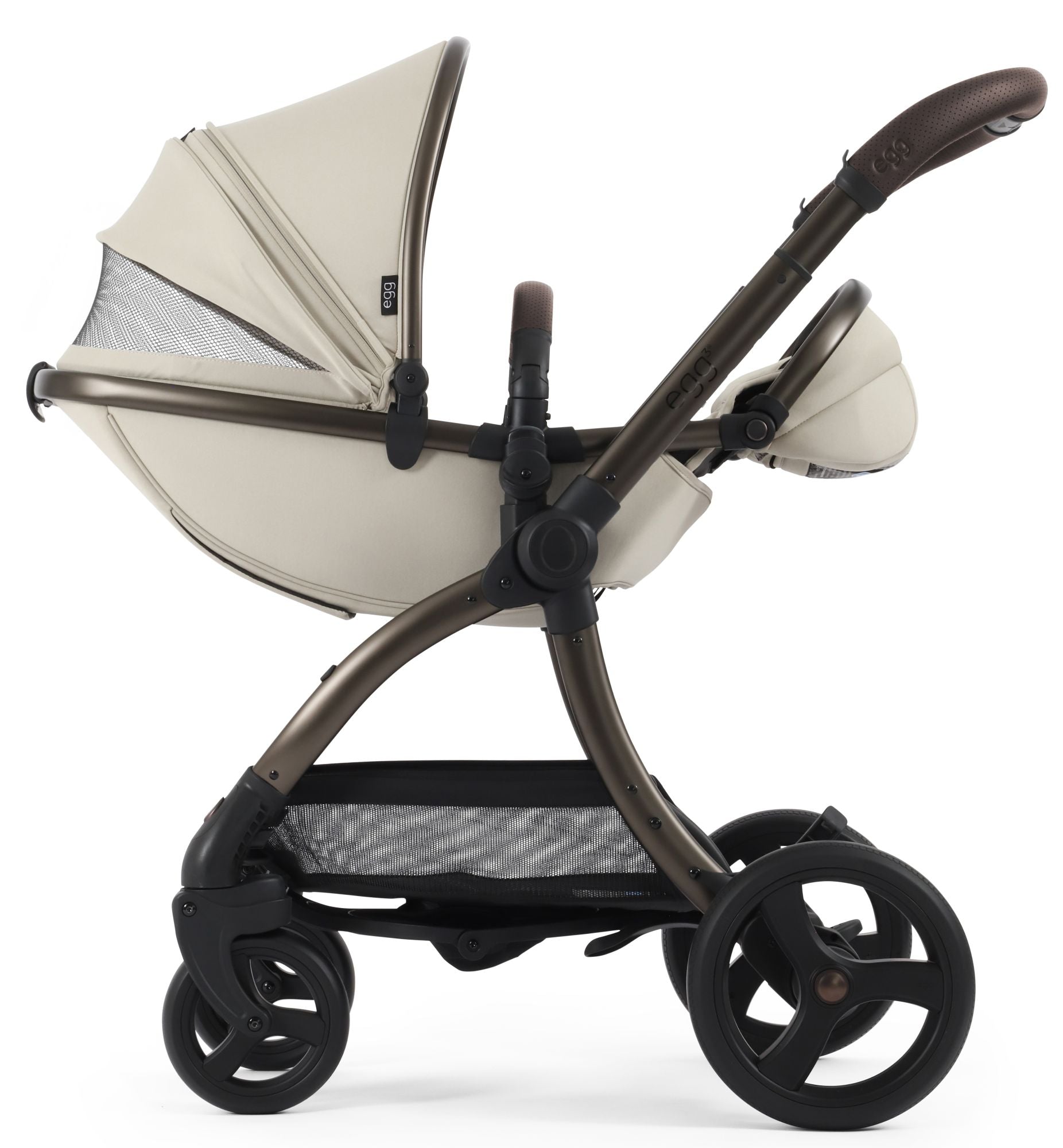 - Stroller includes: Rain cover, insect net, apron and reversible fleece liner. Suitable from 6 months to 25kg (from birth with the egg3® carrycot).