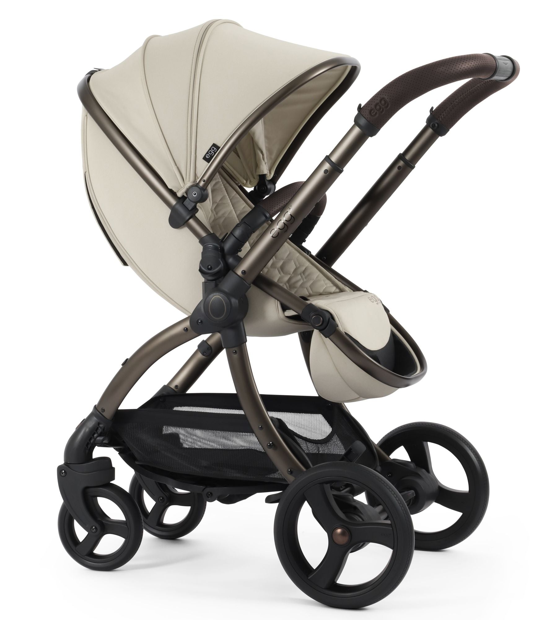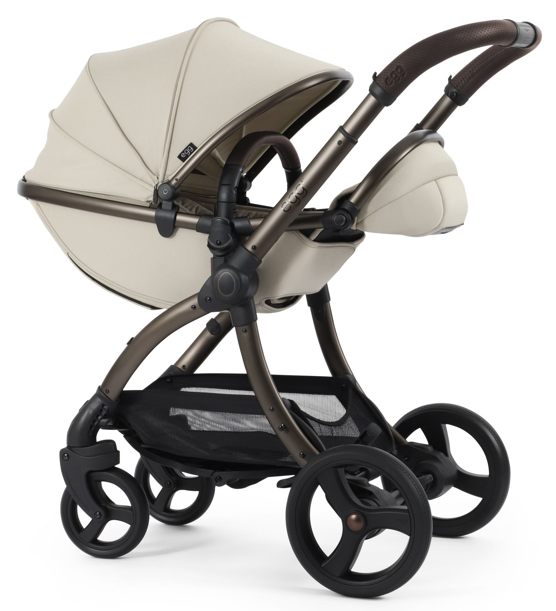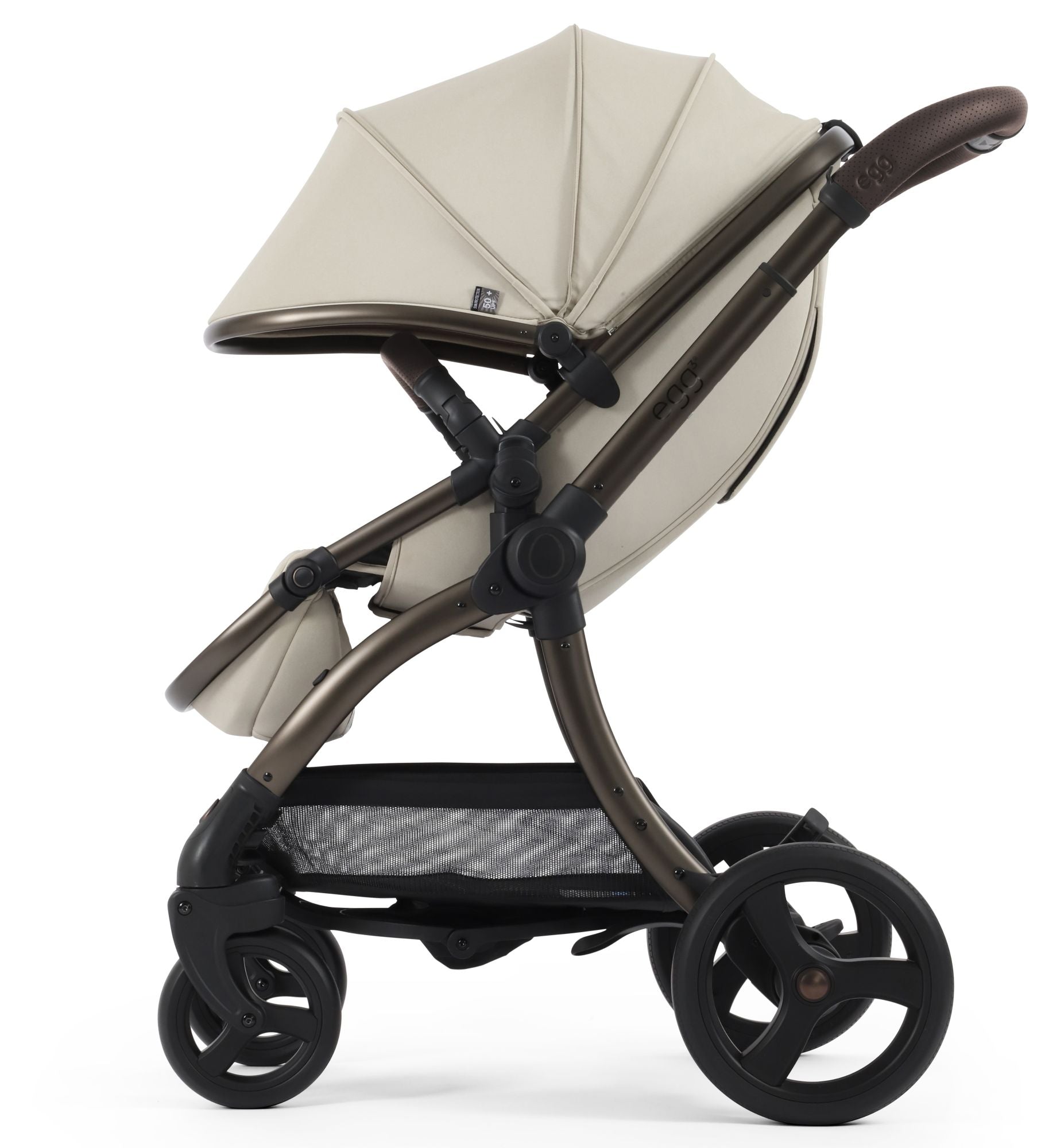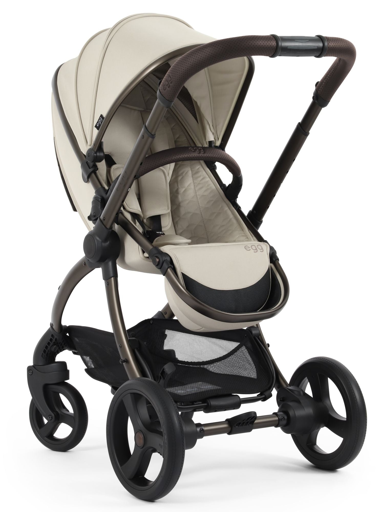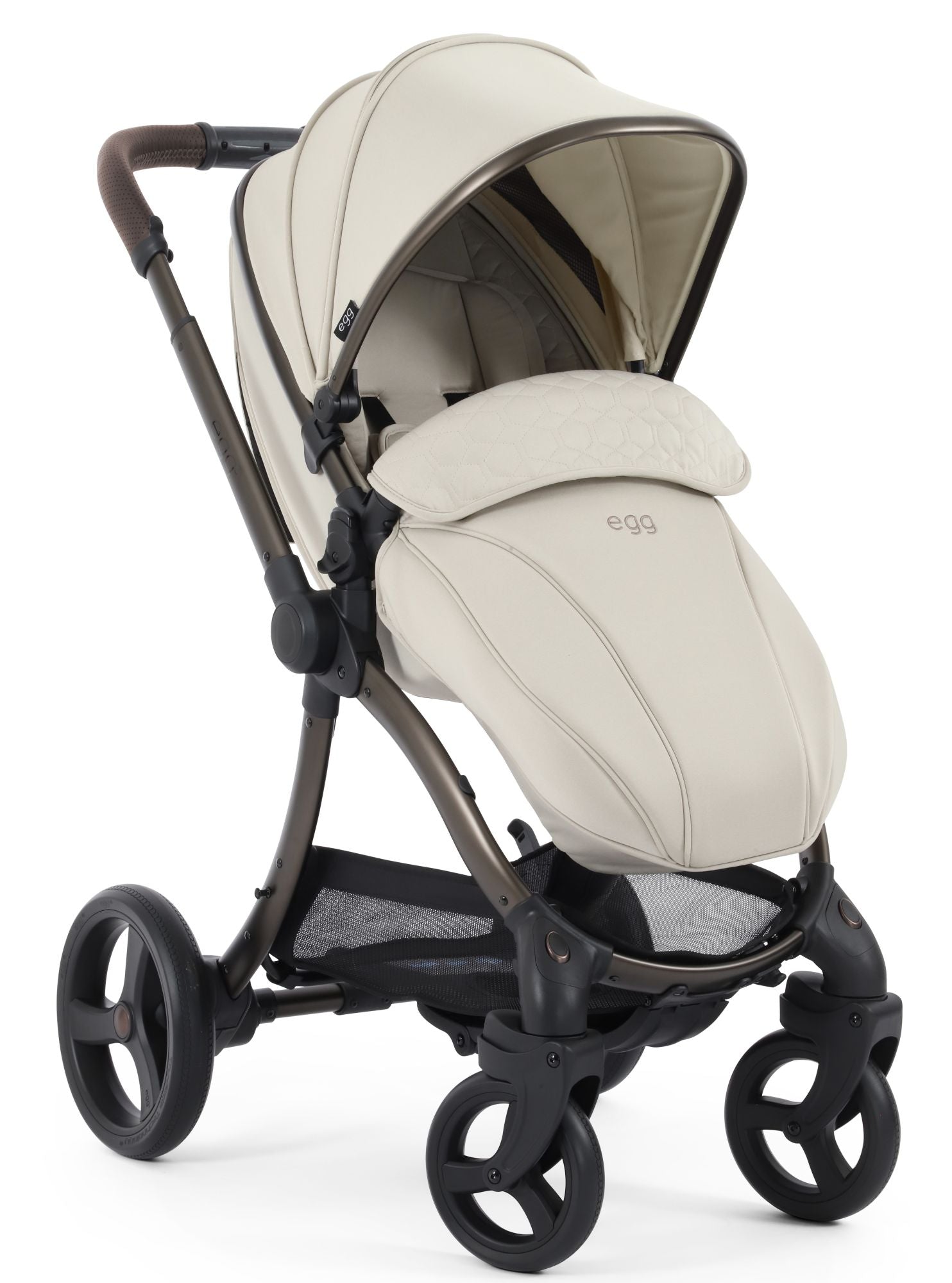 Featuring a ‘one-hand fold’ the egg3® chassis is compact when folded and free-stands, with the handle clear from the ground. It’s large puncture-free tyres
