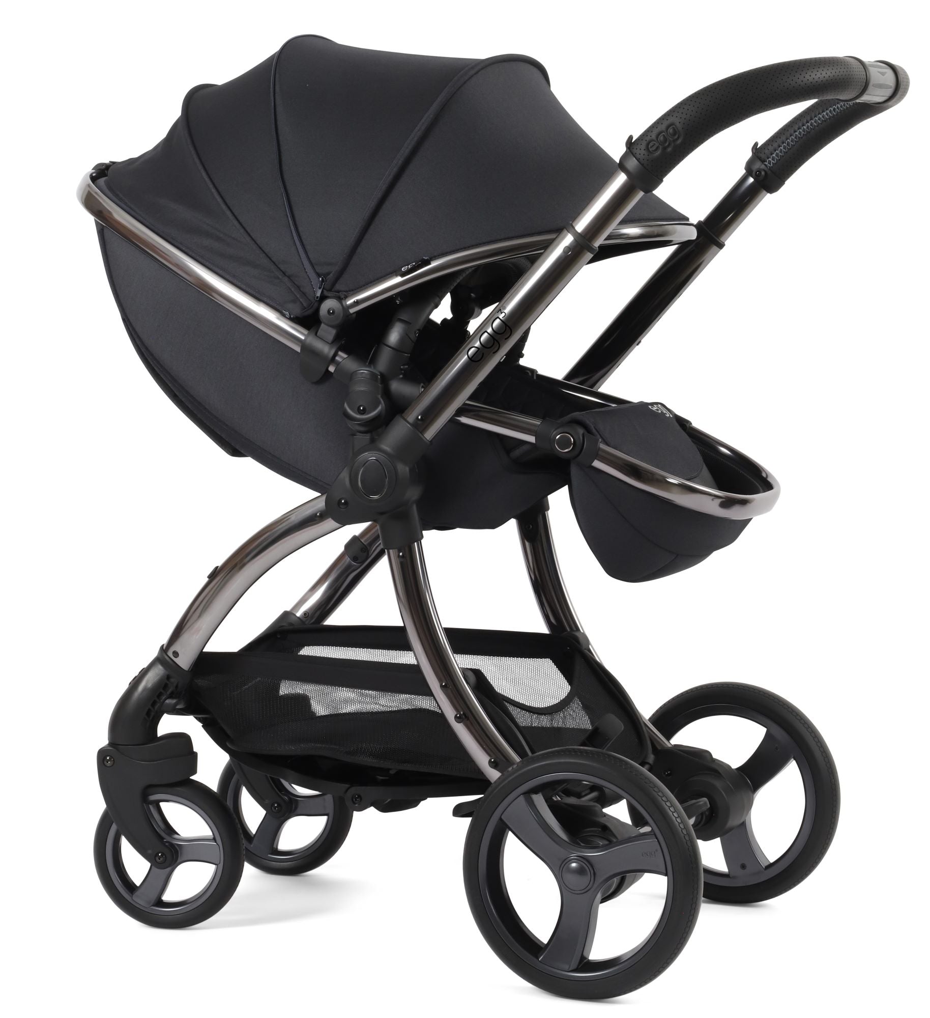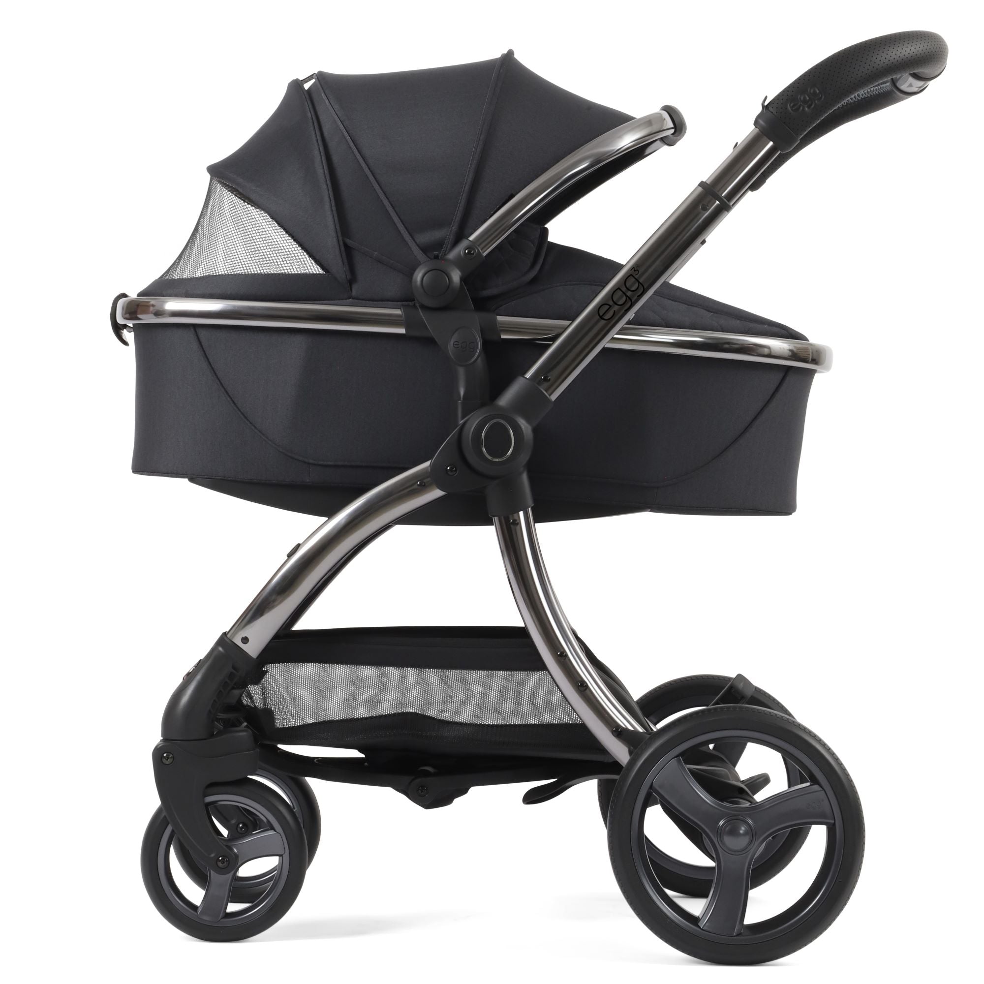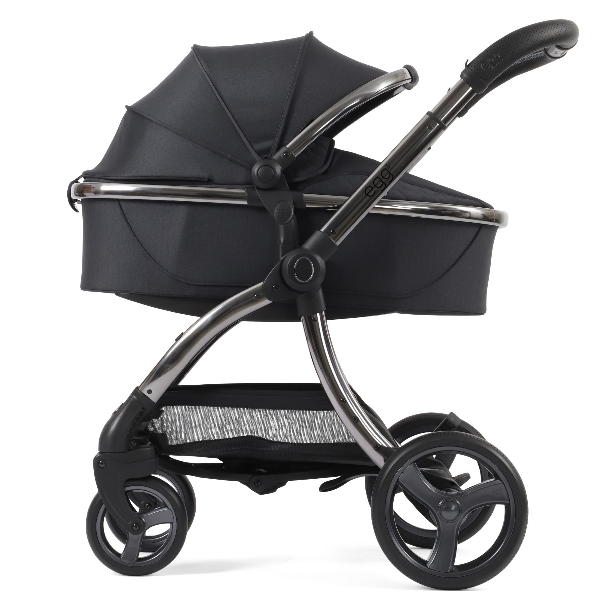 Featuring a ‘one-hand fold’ the egg3® chassis is compact when folded and free-stands, with the handle clear from the ground. It’s large puncture-free tyres