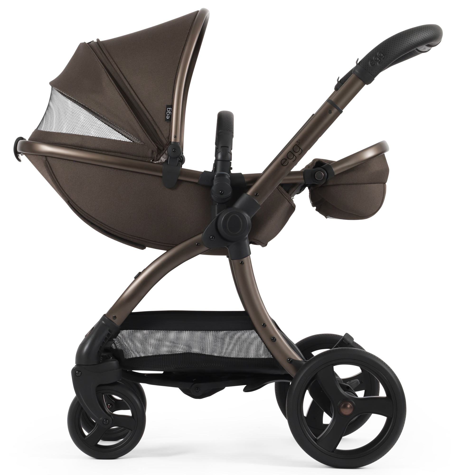 Featuring a ‘one-hand fold’ the egg3® chassis is compact when folded and free-stands, with the handle clear from the ground. It’s large puncture-free tyres