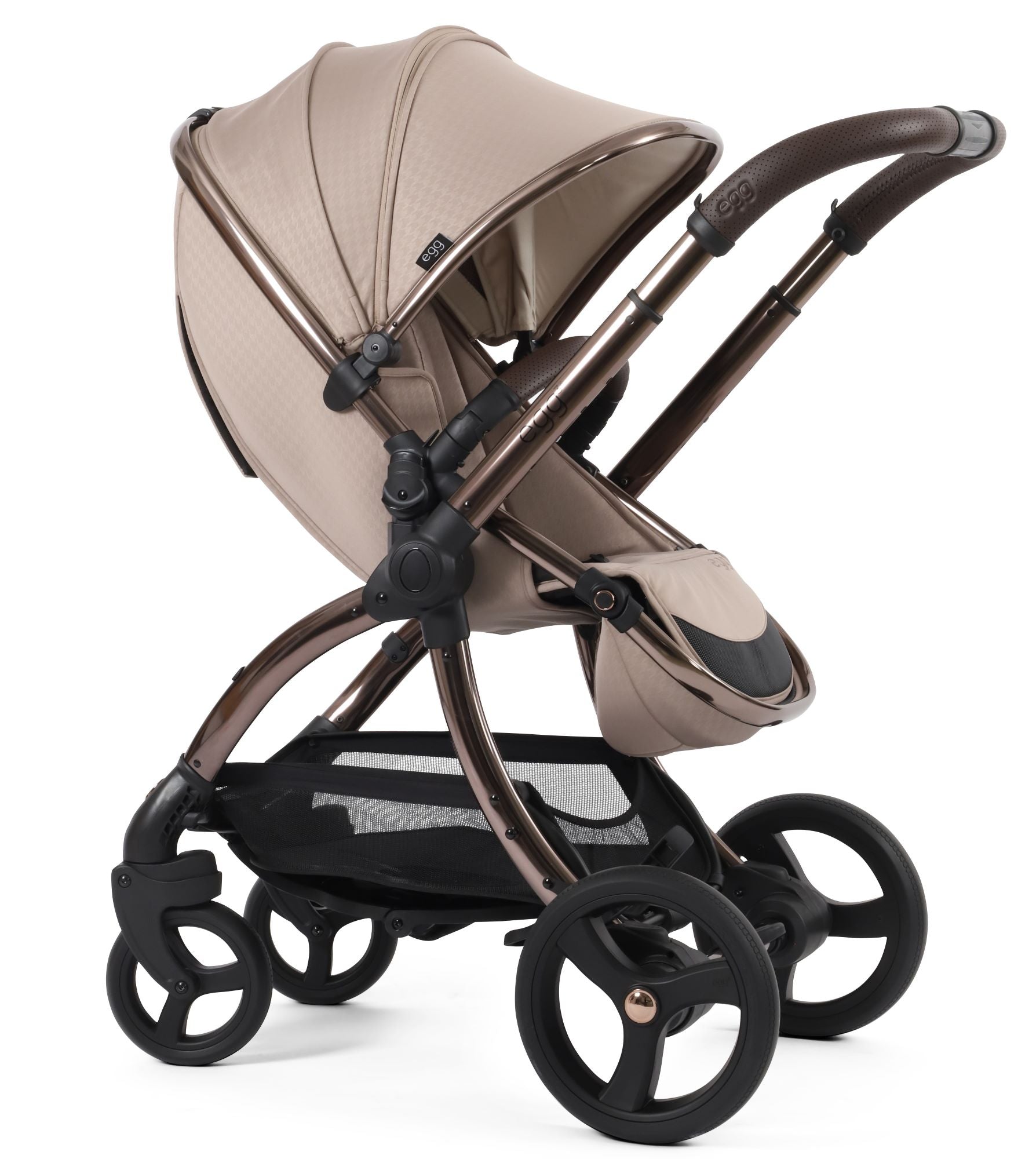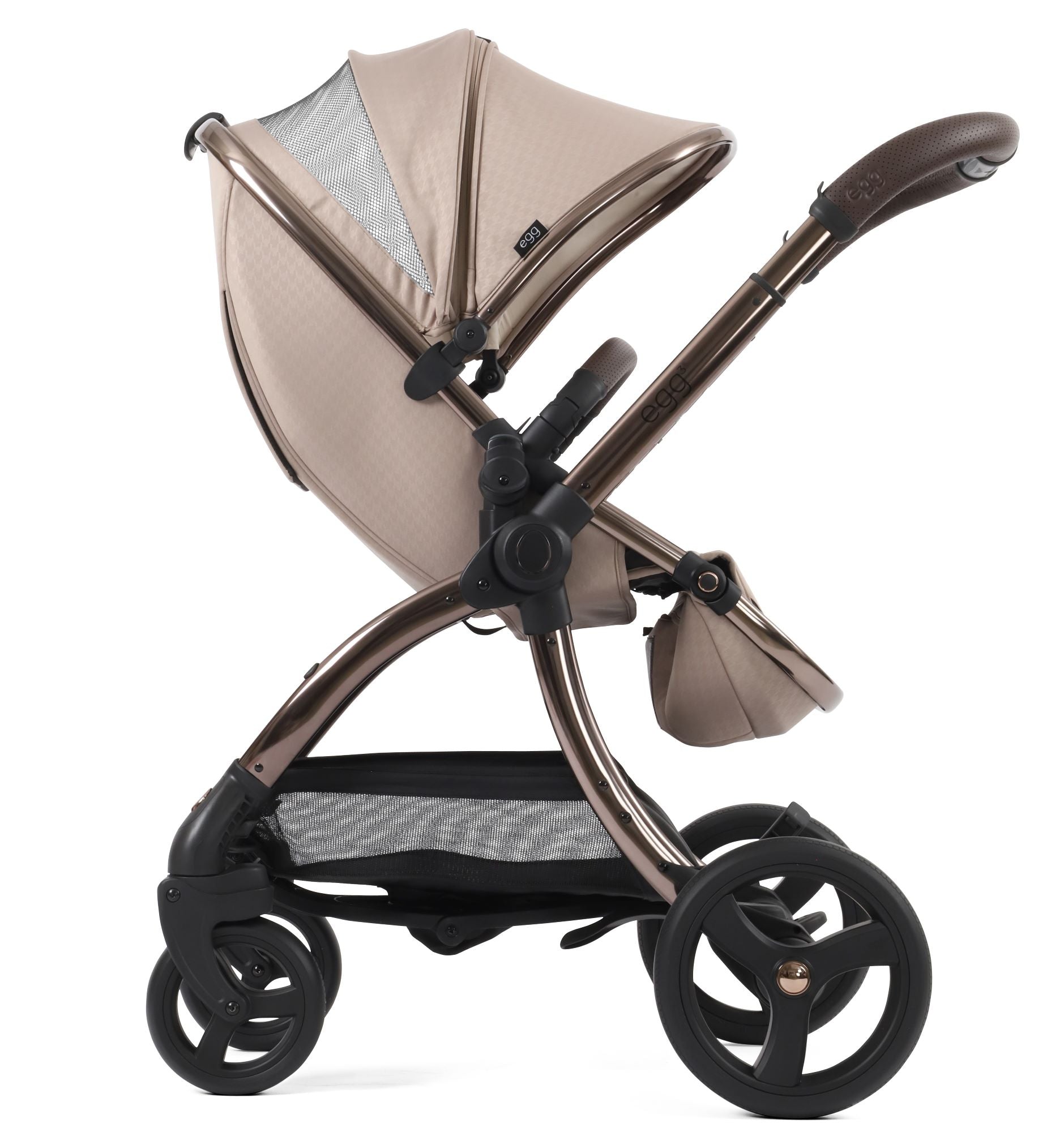 Featuring a ‘one-hand fold’ the egg3® chassis is compact when folded and free-stands, with the handle clear from the ground. It’s large puncture-free tyres