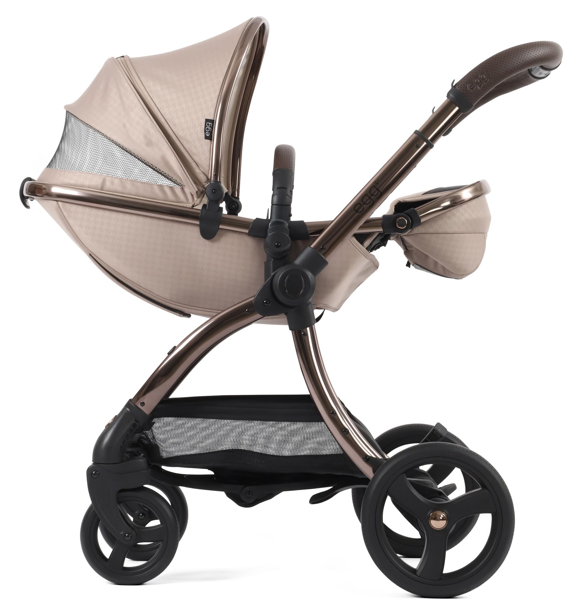 - Stroller includes: Rain cover, insect net, apron and reversible fleece liner. Suitable from 6 months to 25kg (from birth with the egg3® carrycot).