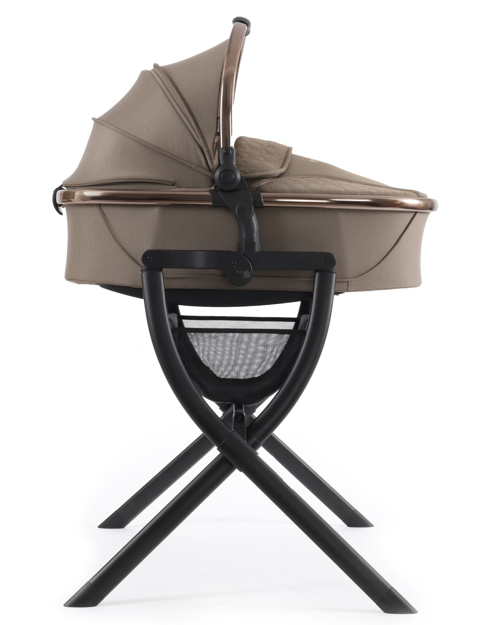The perfect companion for your little one’s early months, the new egg® Carrycot Stand. Crafted with both functionality and style in mind, this stand is designed to replace the need for a Moses basket and provide a secure and elevated space for your baby’s egg® Carrycot in the home, or away. Whilst in use we recommend parents remove the carrycot apron and pop down the canopy for optimum airflow. The egg® Carrycot Stand includes handy basket, and when not in use it can be folded away in seconds.