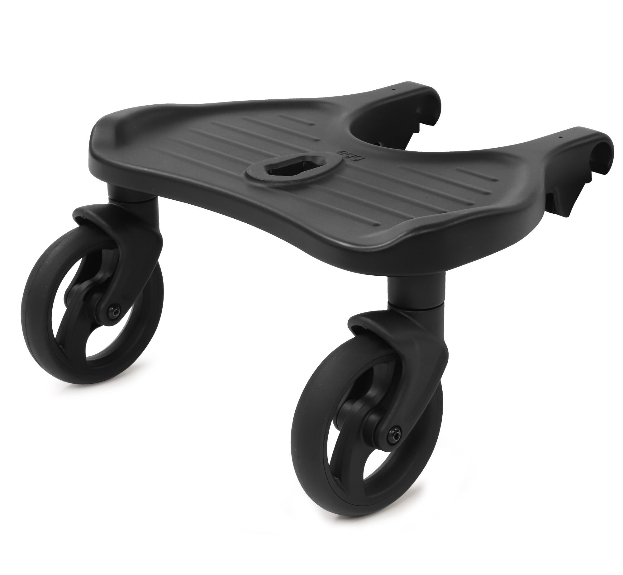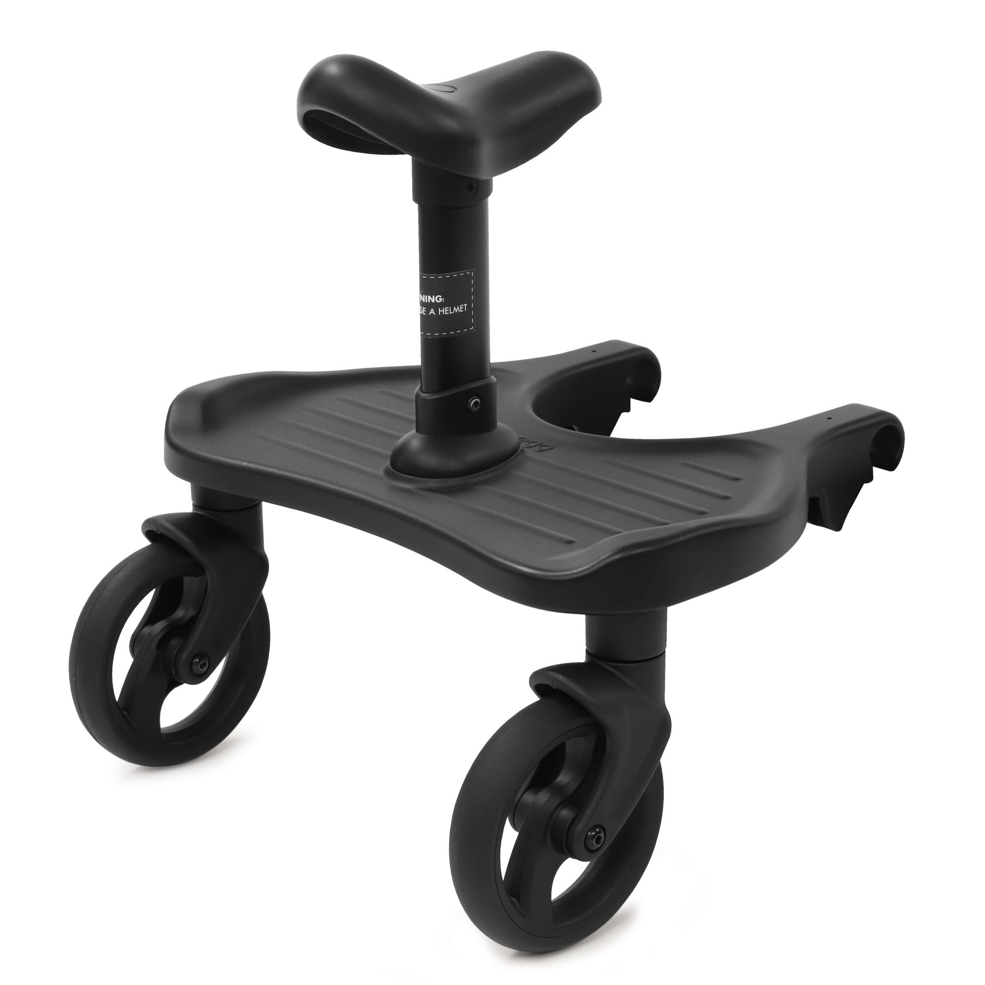The new egg® ride-on-board (with seat post hole) easily attaches to the egg®, egg2® and egg3® with the included adaptors.