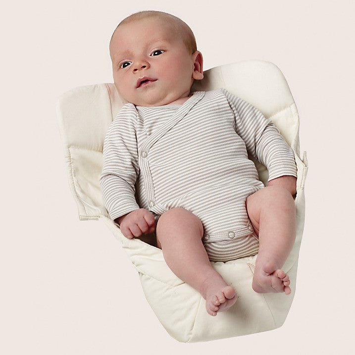 The Ergobaby Easy Snug Infant Insert allows you to carry your newborn baby both comfortably and ergonomically in soothing, nest-like comfort, for a cozy transition to the world from the womb. Its fan-shaped design securely attaches to Ergobaby’s 3 Position Original and 4 Position 360 Carriers, enabling an easy loading of baby and allowing for more airflow, while providing all the extra thigh, spine, head and neck support your baby needs in his early months.