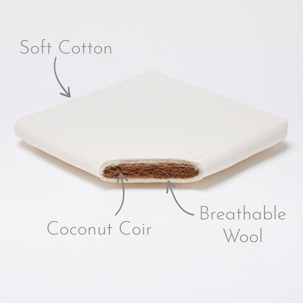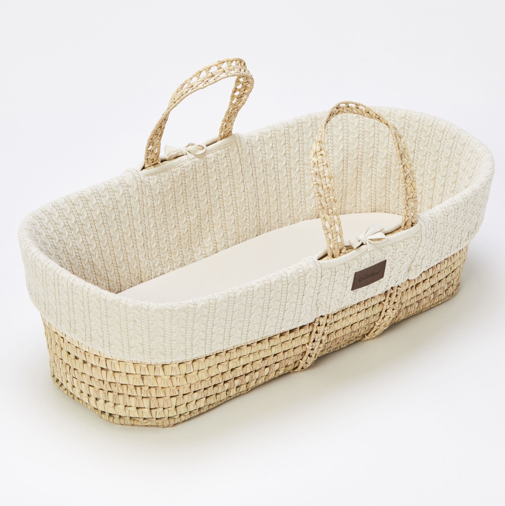 Create the most natural sleeping environment from day one with this stunning knitted Moses basket, part of the "With Love" collection from Little Green Sheep. Complete with a luxurious chemical-free Little Green Sheep mattress.