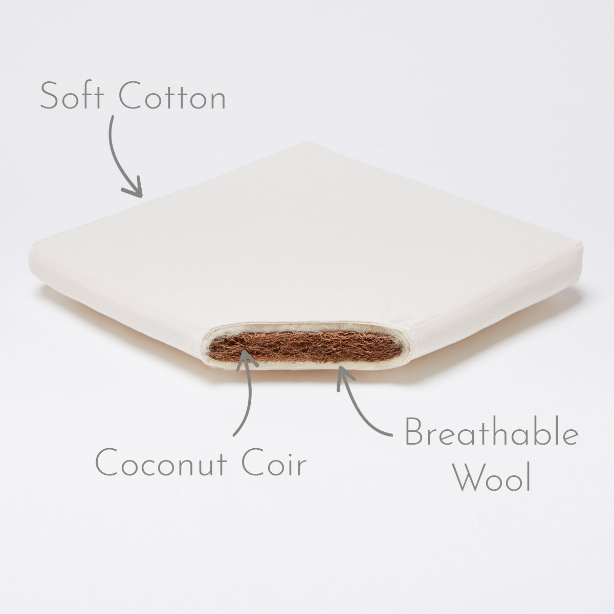 Create the most natural sleeping environment for your little one with our stunning natural quilted moses basket. Made from strong natural palm leaf, it also includes a special chemical-free Little Green Sheep mattress.