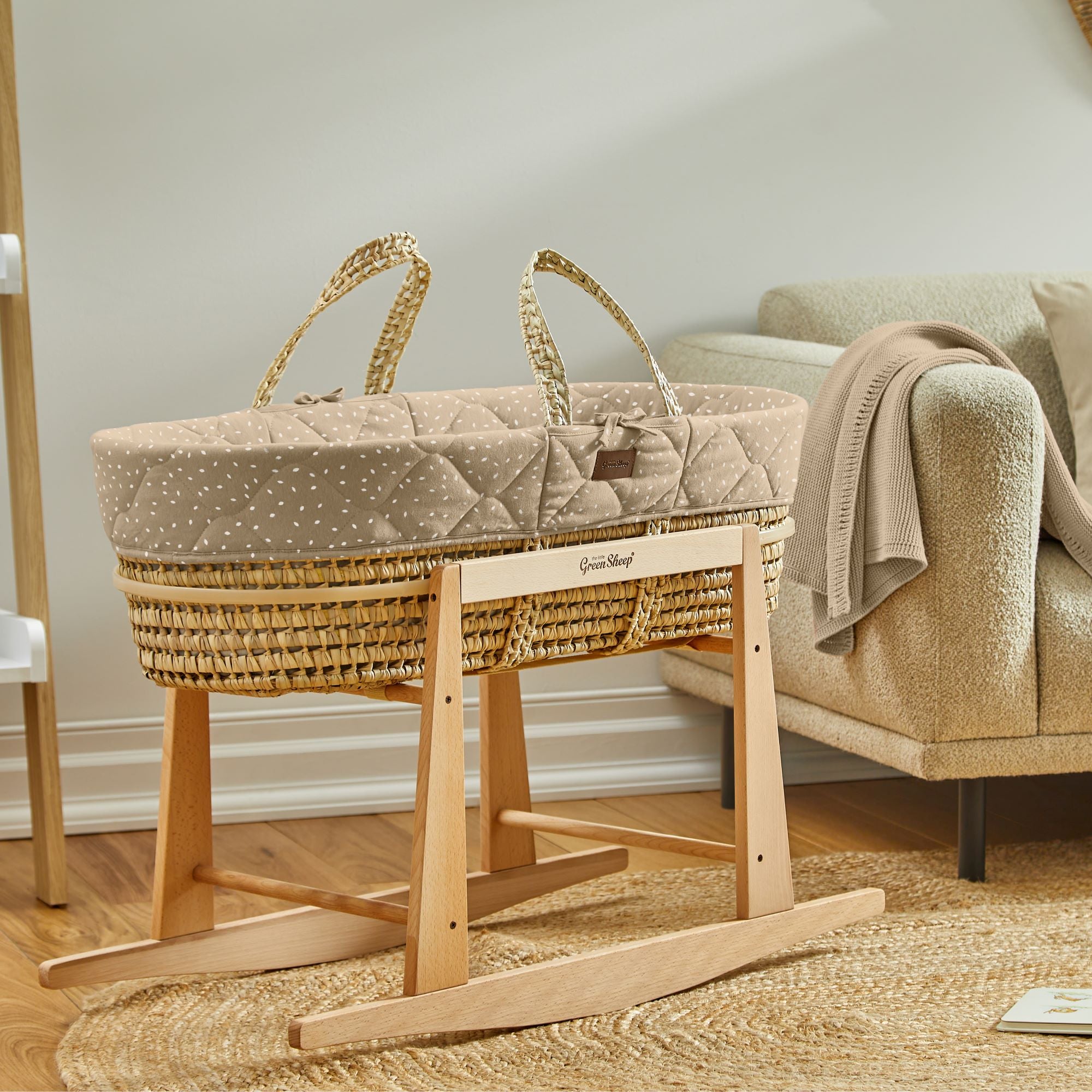 Little Green Sheep Natural Quilted Moses Basket - Truffle Rice