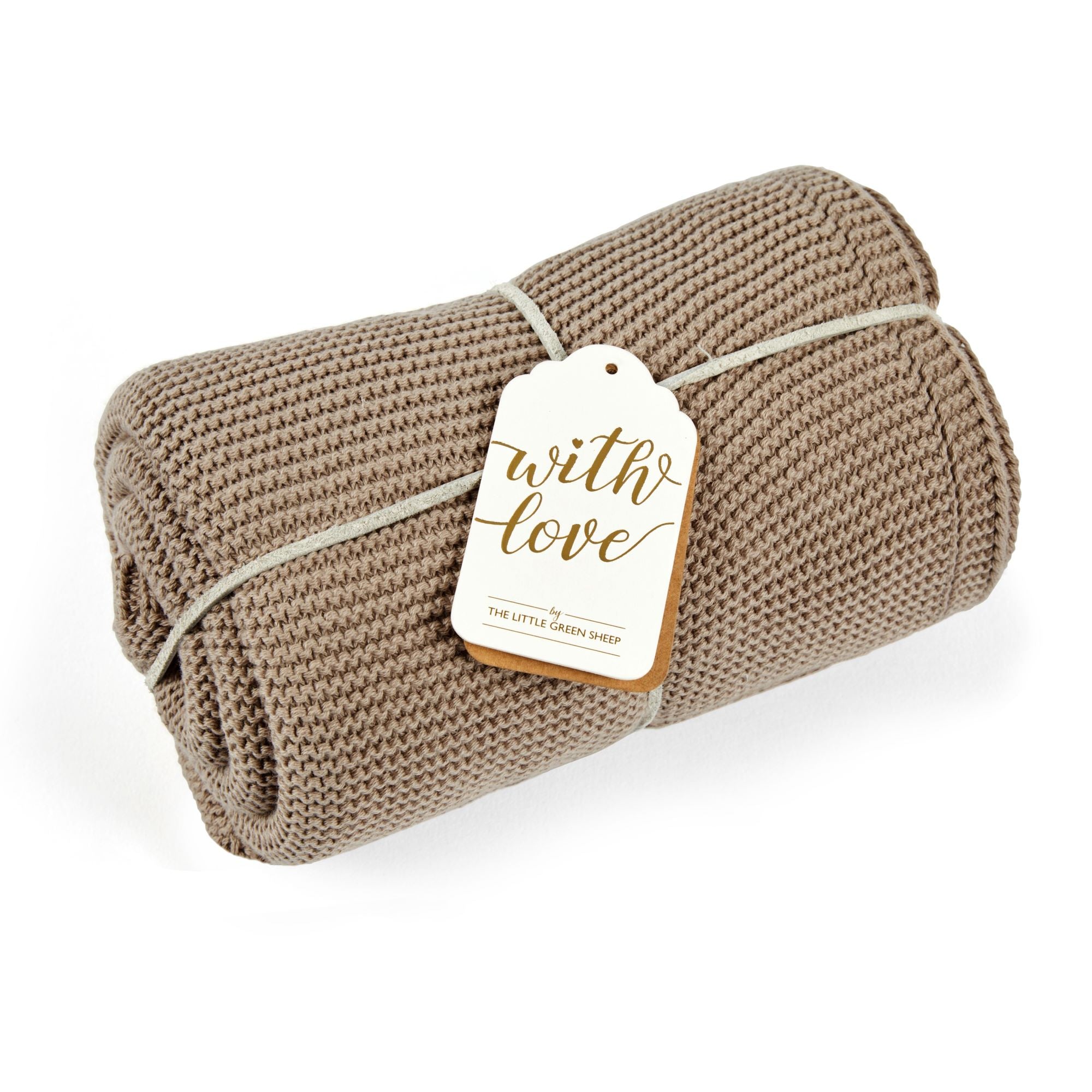 Little Green Sheep Organic Knitted Cellular Blanket - Truffle