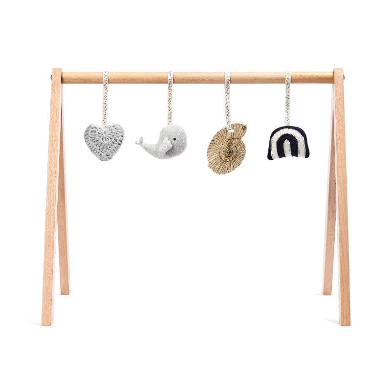 The beautifully made hand-oiled A-frame Baby Gym from Little Green Sheep is as natural as it gets! Complete with four adorable detachable charms, it's perfect for your little one to explore in the home or on the go.