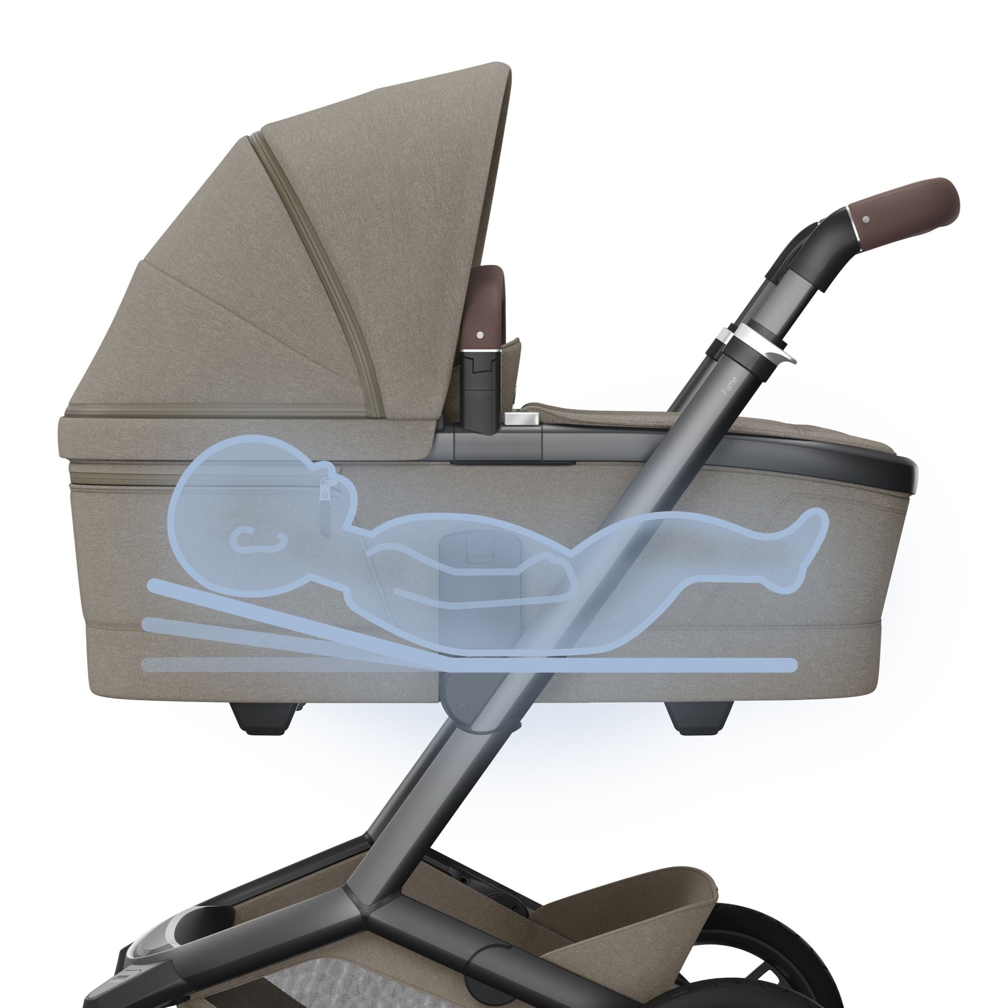 Soothing Slope: The carrycot is designed with an integrated Soothing Slope. Simply pull a strap to gently raise your baby into an inclined sleeping position.