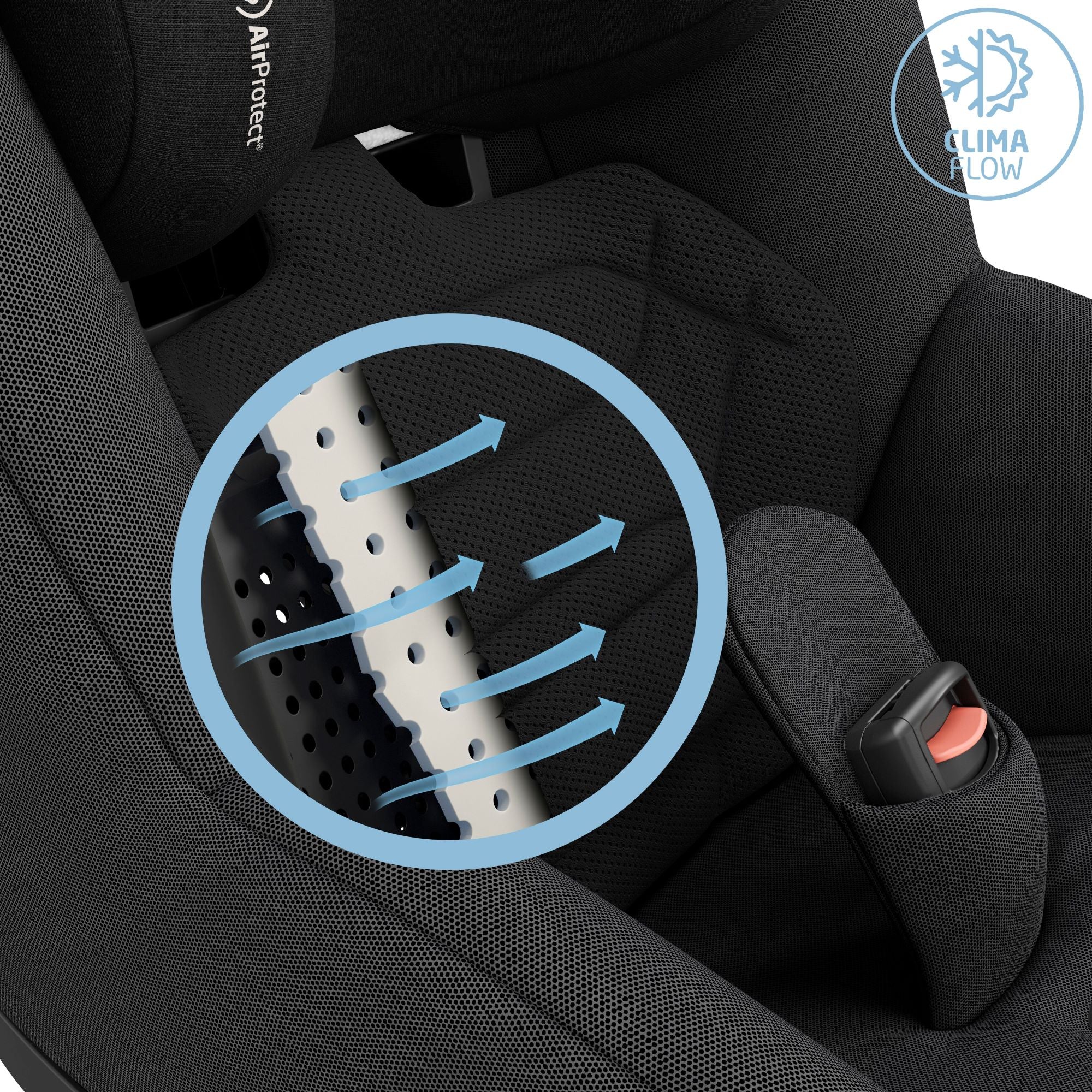 - Comfort features: Designed for parents as well as toddlers, the Maxi-Cosi Pearl 360 Pro offers maximum comfort, safety, flexibility and ease. With five super-comfortable recline positions to choose from, Pearl 360 Pro offers your toddler superior comfort on the move, whether they’re sitting up looking out of the window or lying back sleeping. An adjustable headrest provides extra comfort and ClimaFlow panels and high-performance breathable fabrics, maximise air circulation to ensure your child is always at the right temperature. With soft, 100% recycled fabrics, Pearl 360 Pro offers superior comfort everywhere you go. And thanks to SlideTech™ technology on the FamilyFix 360 Pro base (sold separately), lifting your toddler in and out of the car, has never been more comfortable for parents.