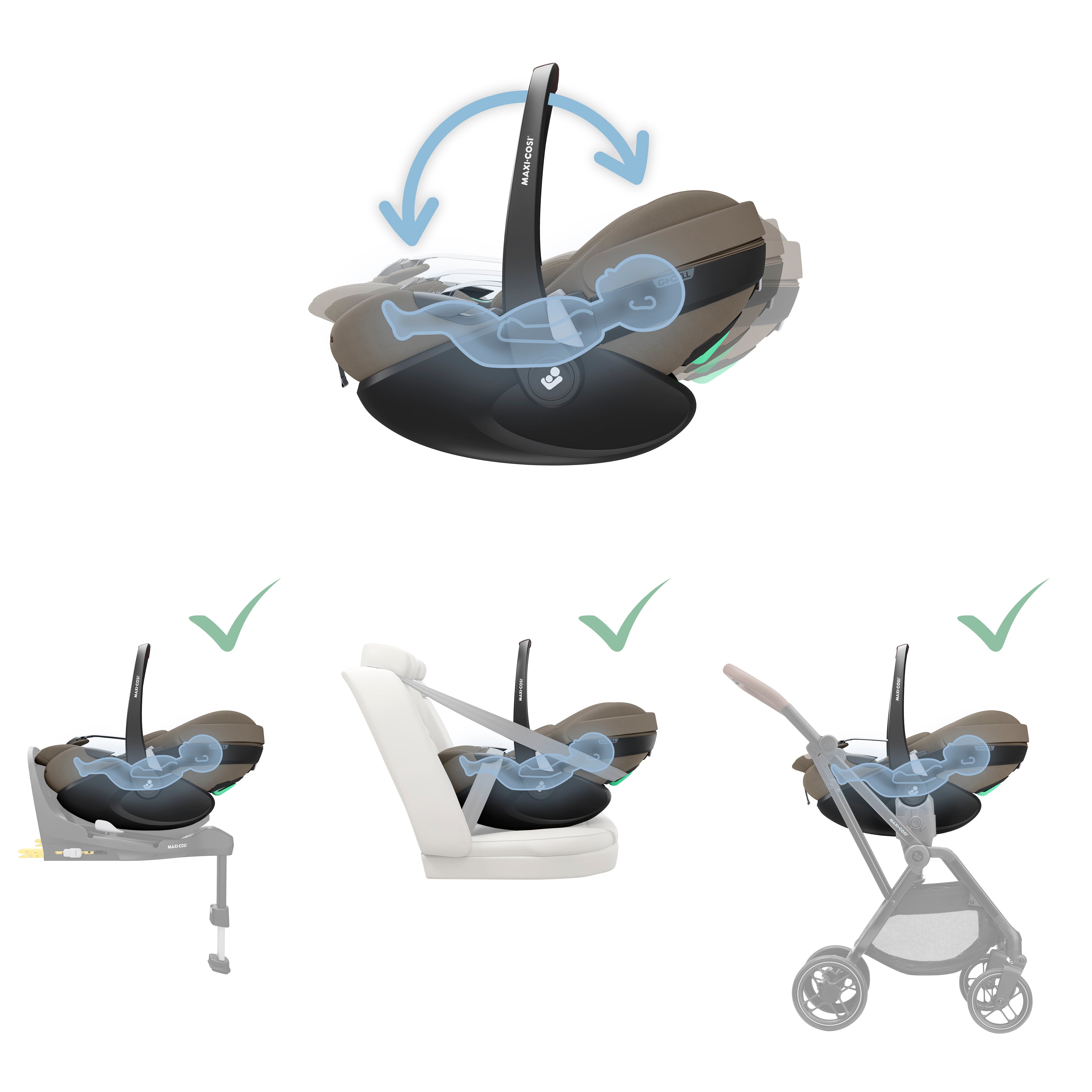 From day one, the Maxi-Cosi Pebble 360 Pro² puts your baby's safety first. It meets the latest i-Size safety standards and G-CELL Side Impact Protection provides superior protection in the event of side impact collisions. The Pebble 360 Pro² is also TÜV certified for use on an airplane, so your baby can travel safely and securely with you on holiday, in their very own car seat, in all recline positions.