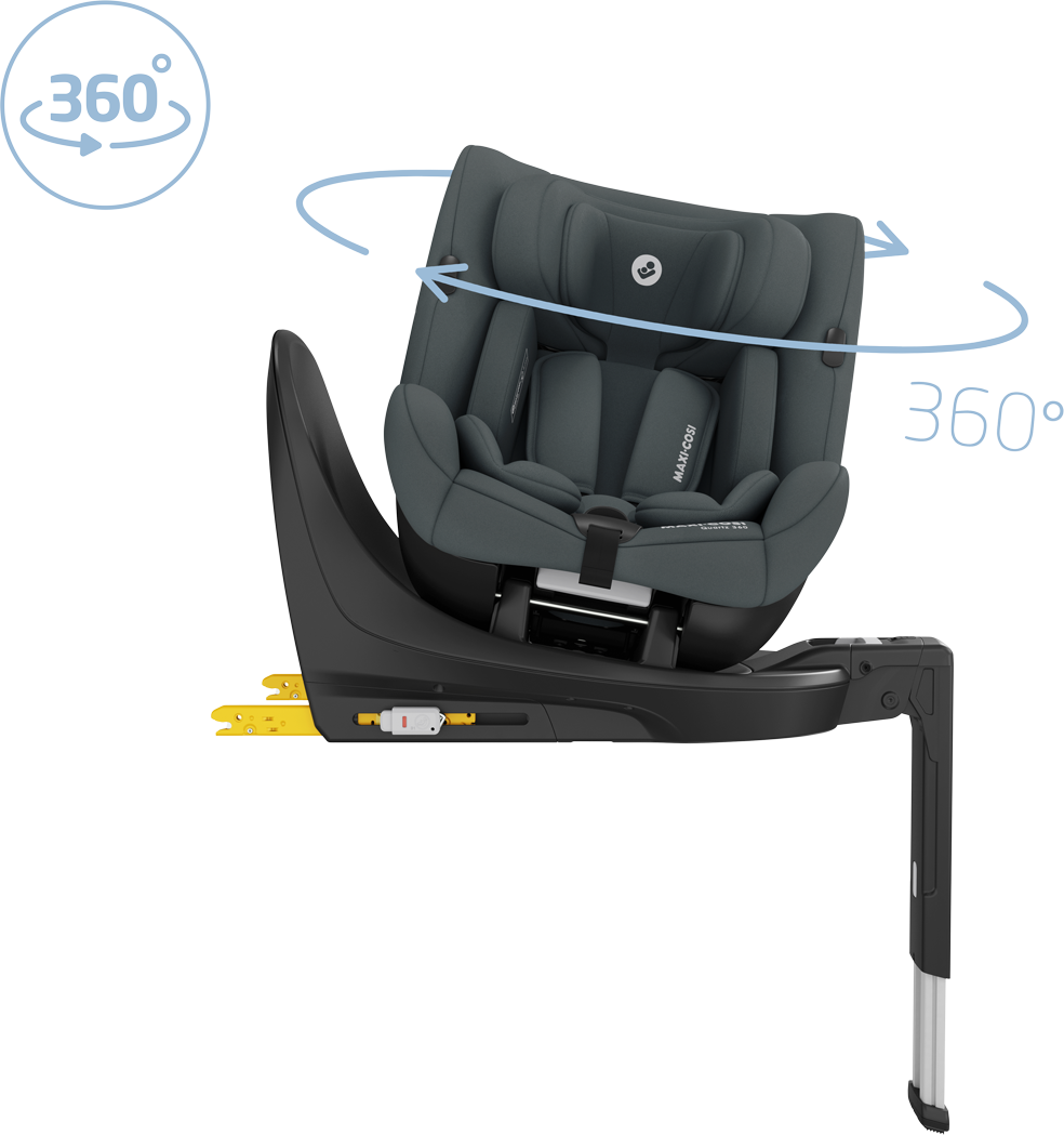- Quartz 360 features an integrated ISOFIX base with 360° rotation and visual indicators for correct and safe installation.