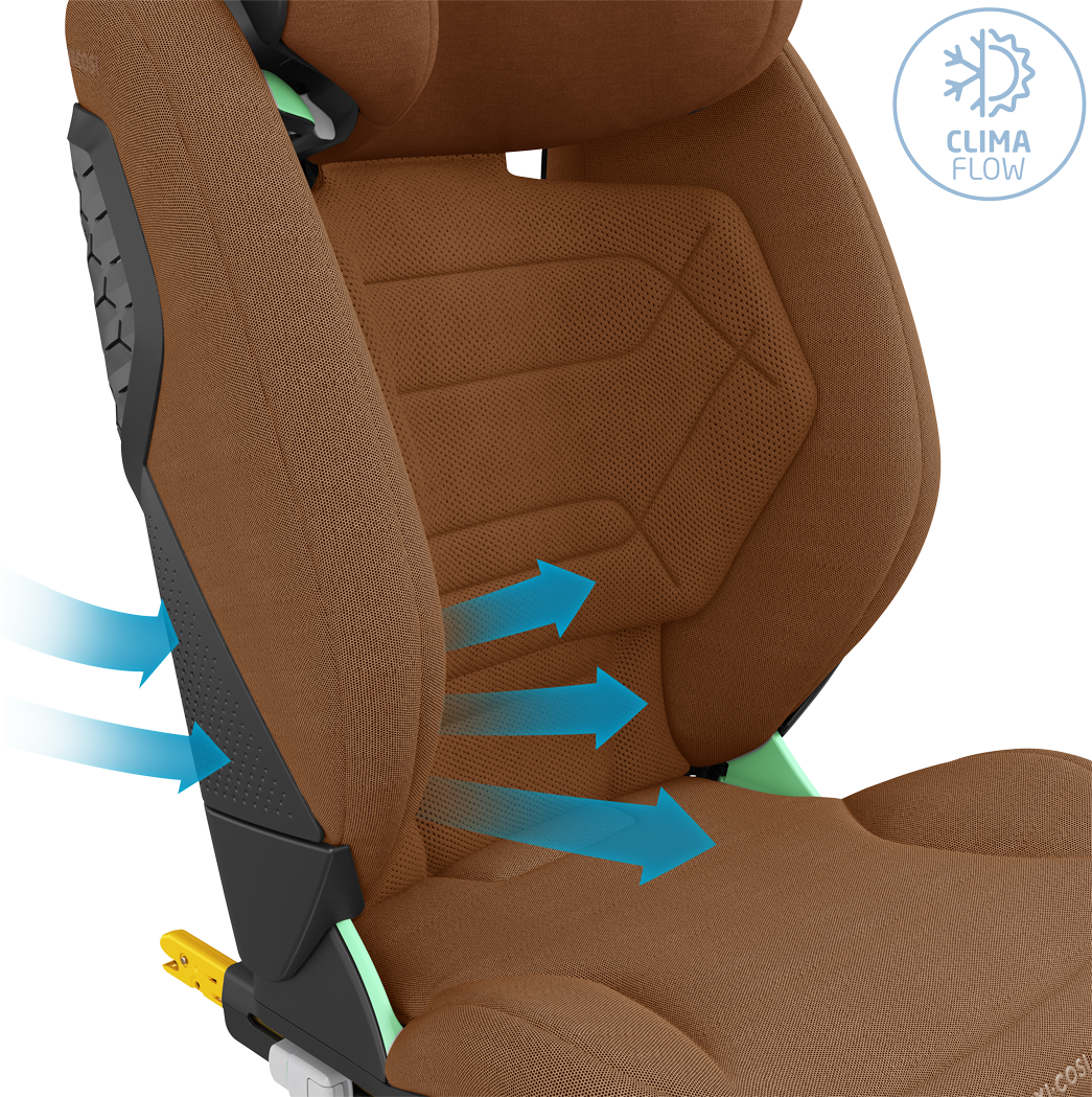 RodiFix Pro² i-Size has three recline positions, which gives children the choice to either sit up straight or recline back slightly and sleep. The AirProtect® Safety cushions are not only protective, they're also extremely soft and provide even more cushioning. The upgraded RodiFix Pro² i-Size has extra padding in the seat for improved comfort and an extra wide backrest, to further enhance your child's comfort as they grow. Made using premium 100% recycled EcoCare fabric, RodiFix Pro² i-Size is distinguishable thanks to it's embossed branding details and premium stitching lines. The seat also features improved ClimaFlow ventilations panels, breathable foam and performance fabrics that enhance air circulation and keep your child at a comfortable temperature, at all times.