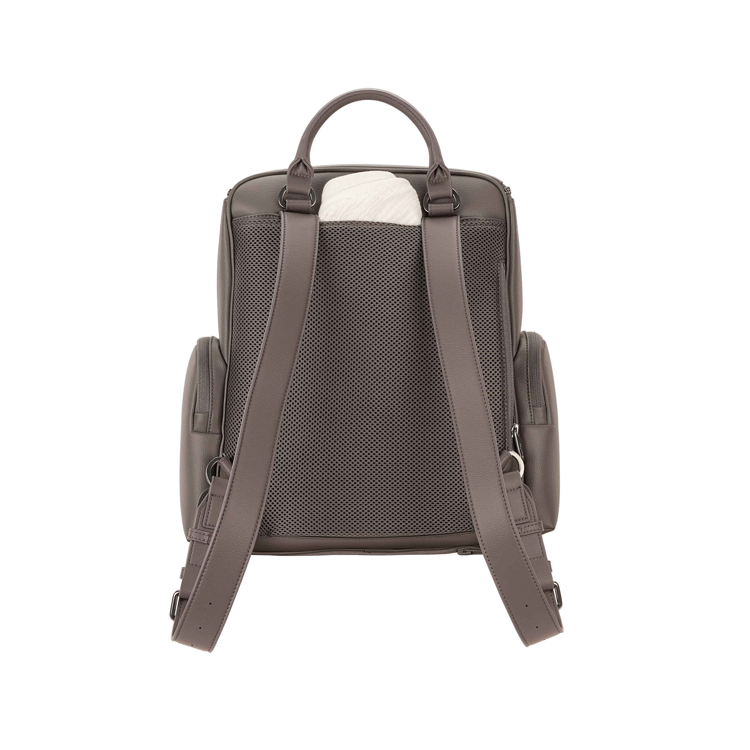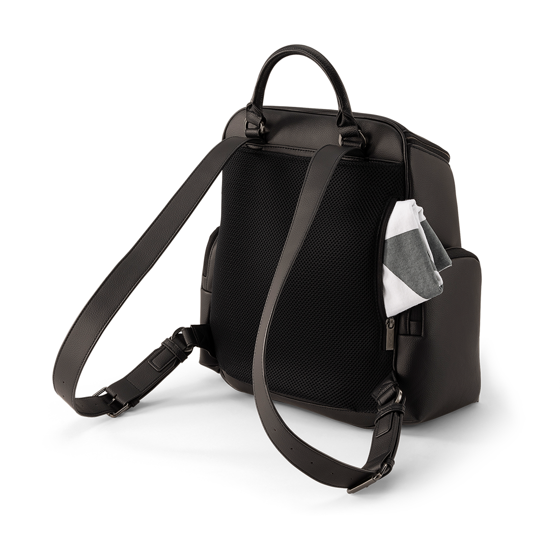The Essential bag redefines everyday luxury with its chic leatherette styling and versatile parenthood functionality. Crafted as a multi-tasking backpack that also serves as a diaper bag, it features a laptop-friendly design with a thoughtful array of exterior and interior pockets, a handy changing pad clutch, and a luggage trolley sleeve for travel convenience.