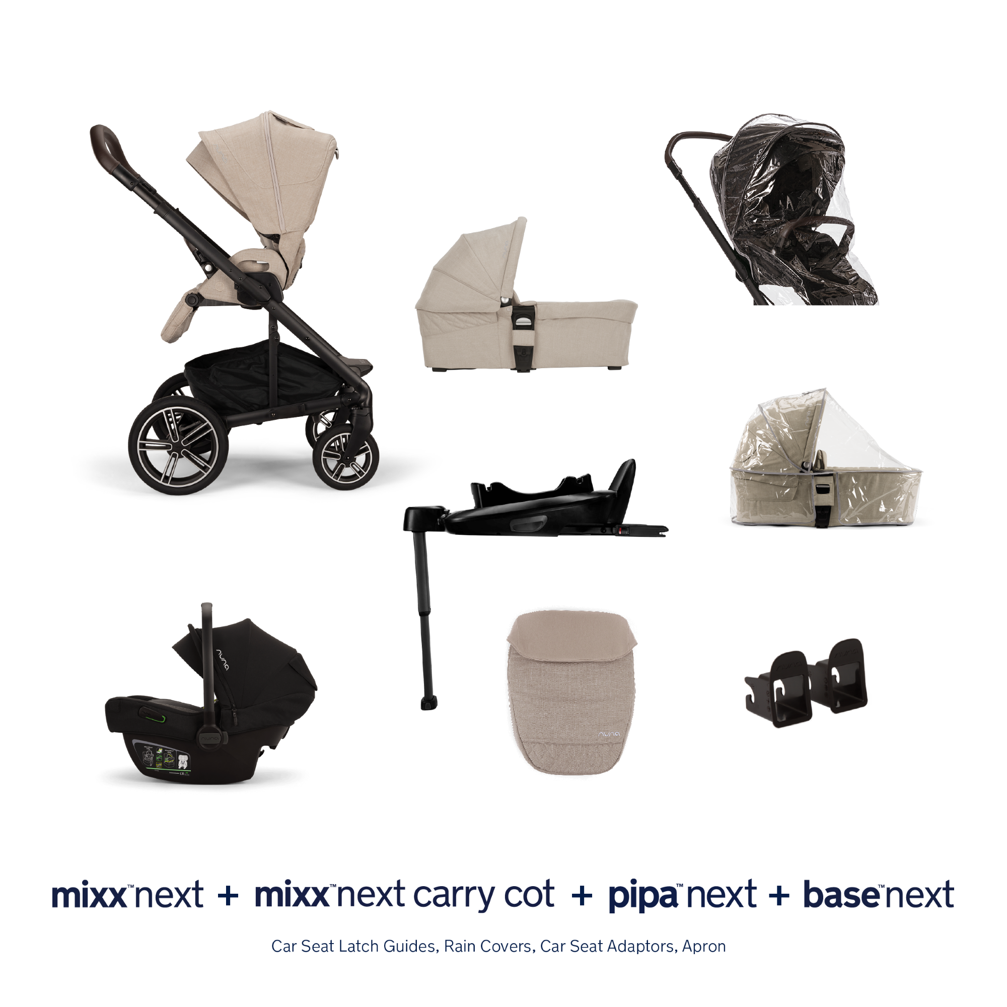 In order to convert your MIXX NEXT stroller into a sophisticated travel system, post car seat adapters are included and allow attachment with the Nuna PIPA NEXT car set (available separately). There is also a compatible Nuna MIXX NEXT carrycot available separately that's perfect for transporting your newborn in a super cosy environment.