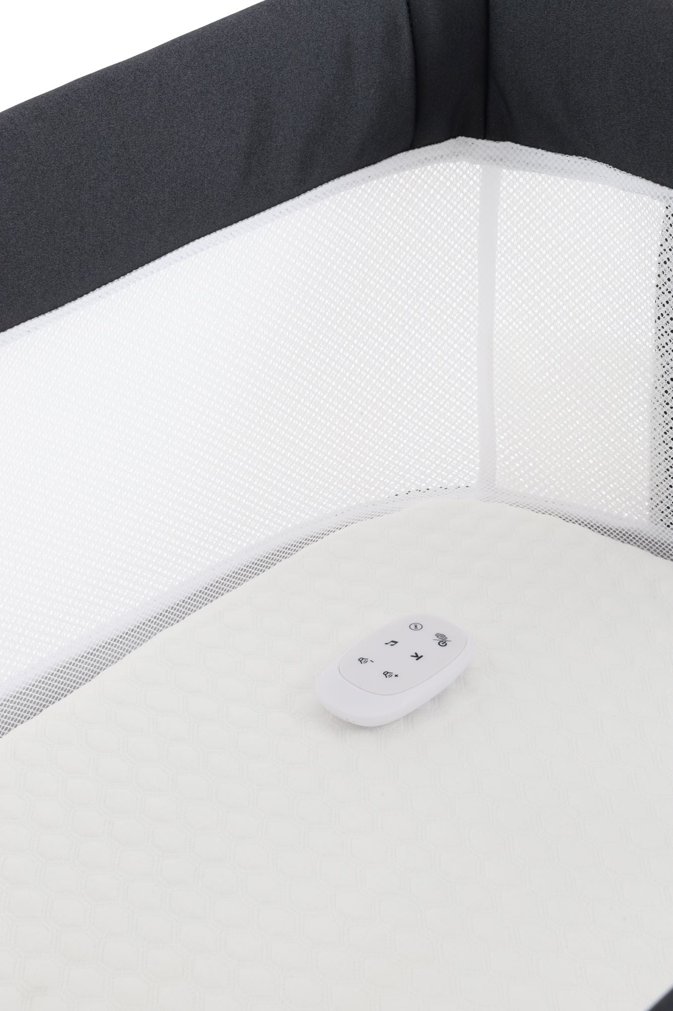 Easily adjust the Wiggle Crib’s functions without disturbing your baby using the convenient remote control. From activating the soothing wiggle motion to selecting sleep sounds and adjusting volume, the remote ensures effortless operation for a stress-free bedtime routine.