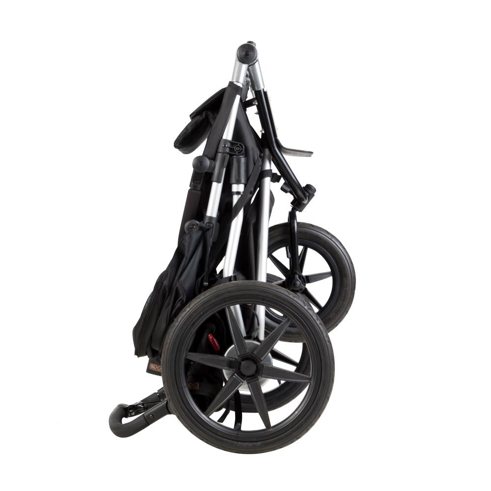 It's sporting enhanced features which include a superior one hand fast fold, multi adjustable handlebar, 3-mode front wheel and shock absorbing suspension, terrain also comes conveniently bundled with both 16" AND 12" rear airfilled tyres, that works with the hand operated control brake for maximum control.