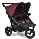 The Nipper Double V6 is our most advanced and versatile double pushchair to date – suitable from newborn to around 4 years old. Built with a durable design that’s made to last (and with access to spare parts when you need them), this all-terrain 3-wheel buggy has 12” air-filled tyres, rear suspension, a swivel-lock front wheel for stability on rough ground, and a lightweight aluminium frame that’s easy to handle. It seats two children (22kg capacity each) yet is just 71cm wide, so it fits through standard doorways with ease.