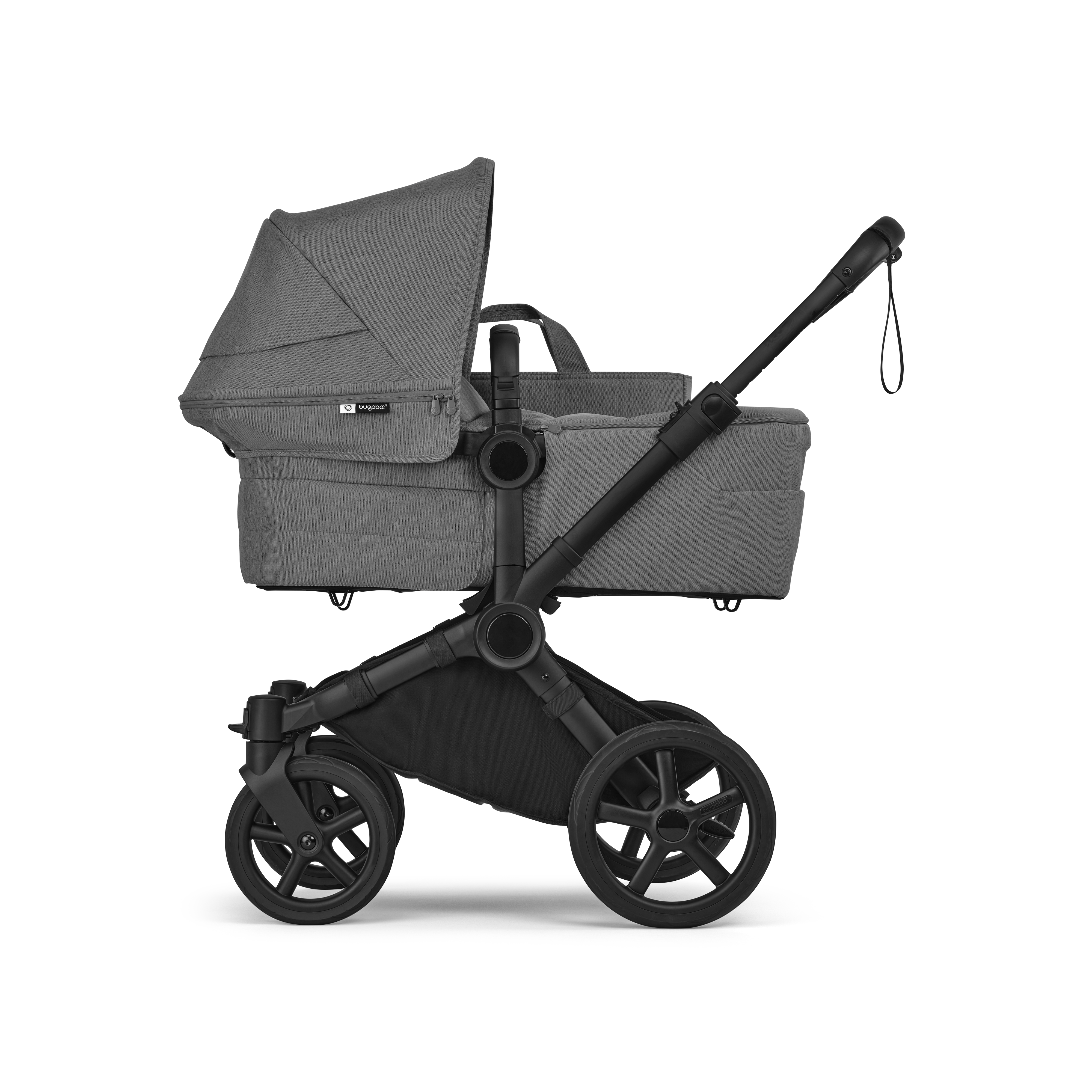 - Pushchair base: The hardware for your Bugaboo Donkey 6. Including chassis, wheels, wheel caps, and pre-assembled grips.