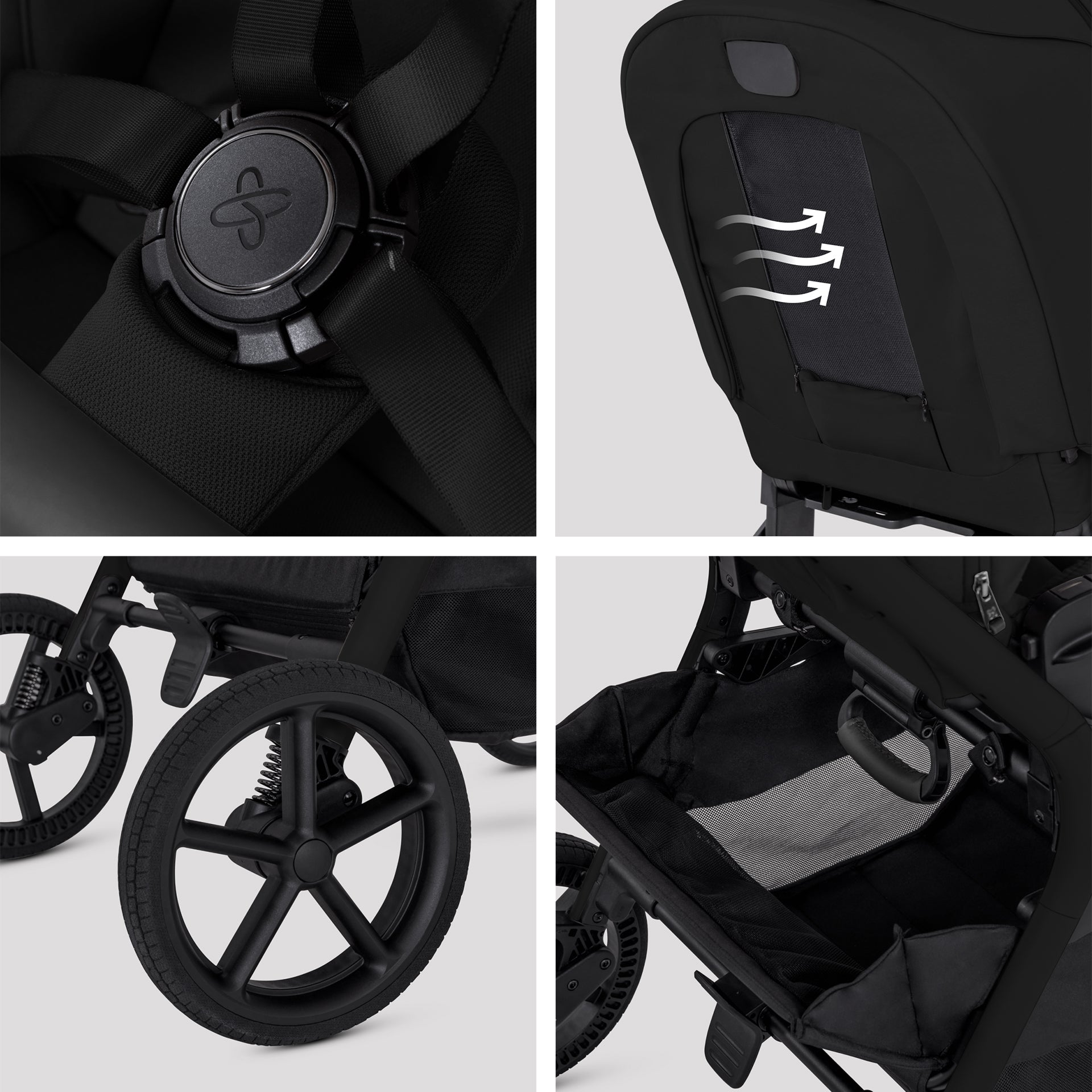 From day one, Breez has you covered with everything you need to get out and about. From city streets to countryside paths, its ergonomic design, Ride-Tech multi-terrain wheels, climate-controlled lie-flat seat and four-wheel spring suspension delivers smooth, effortless rides.