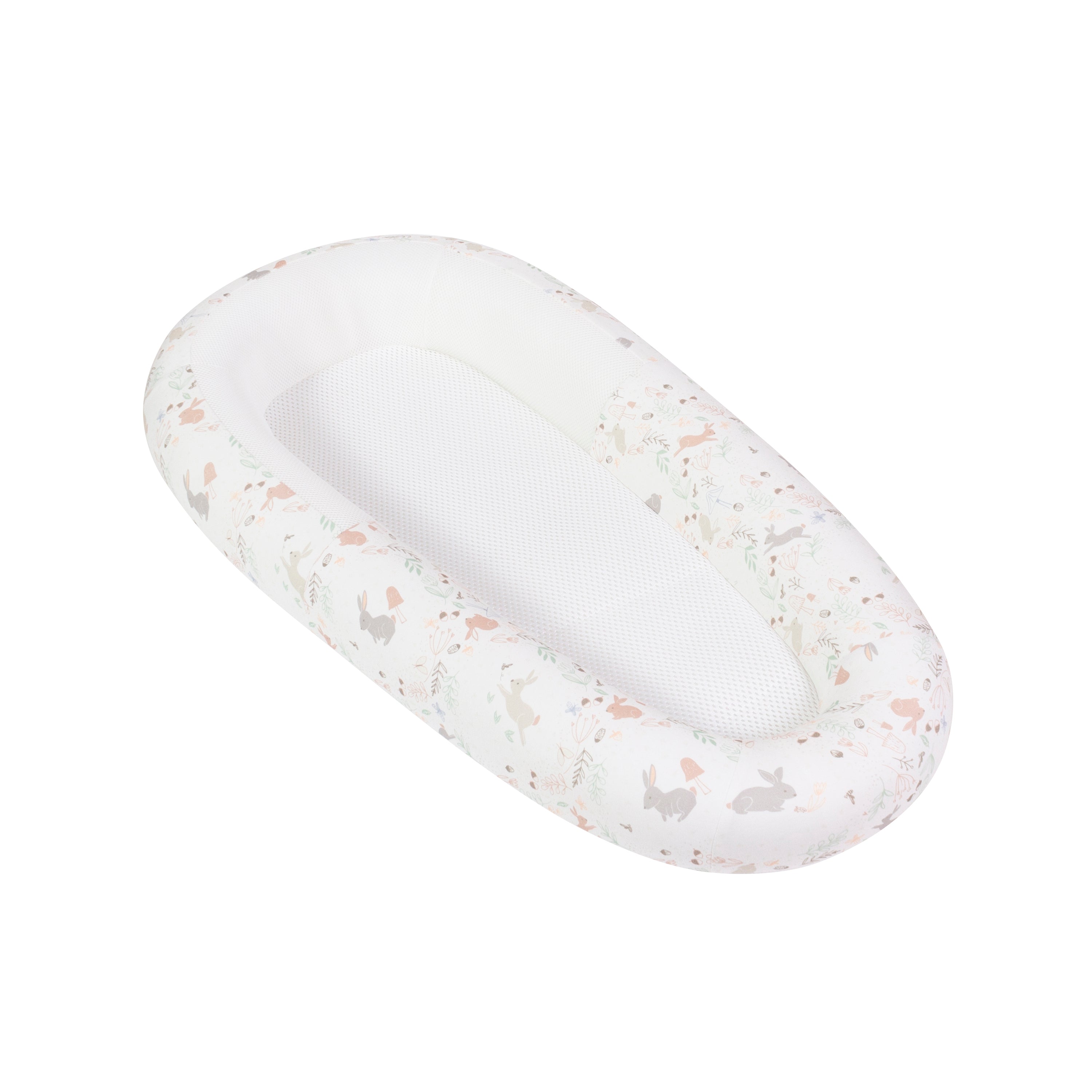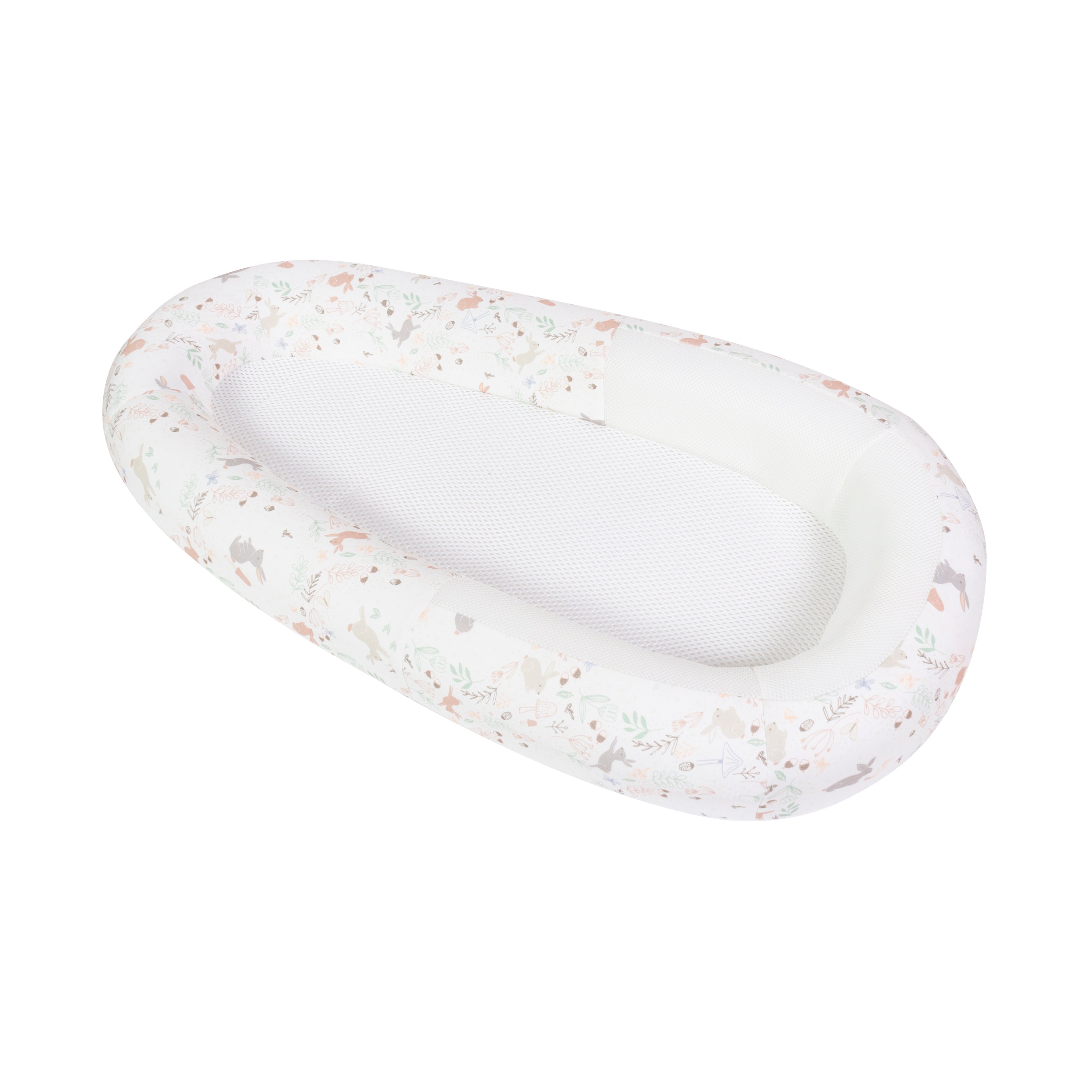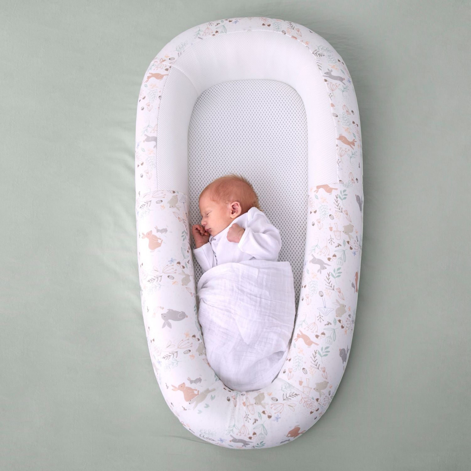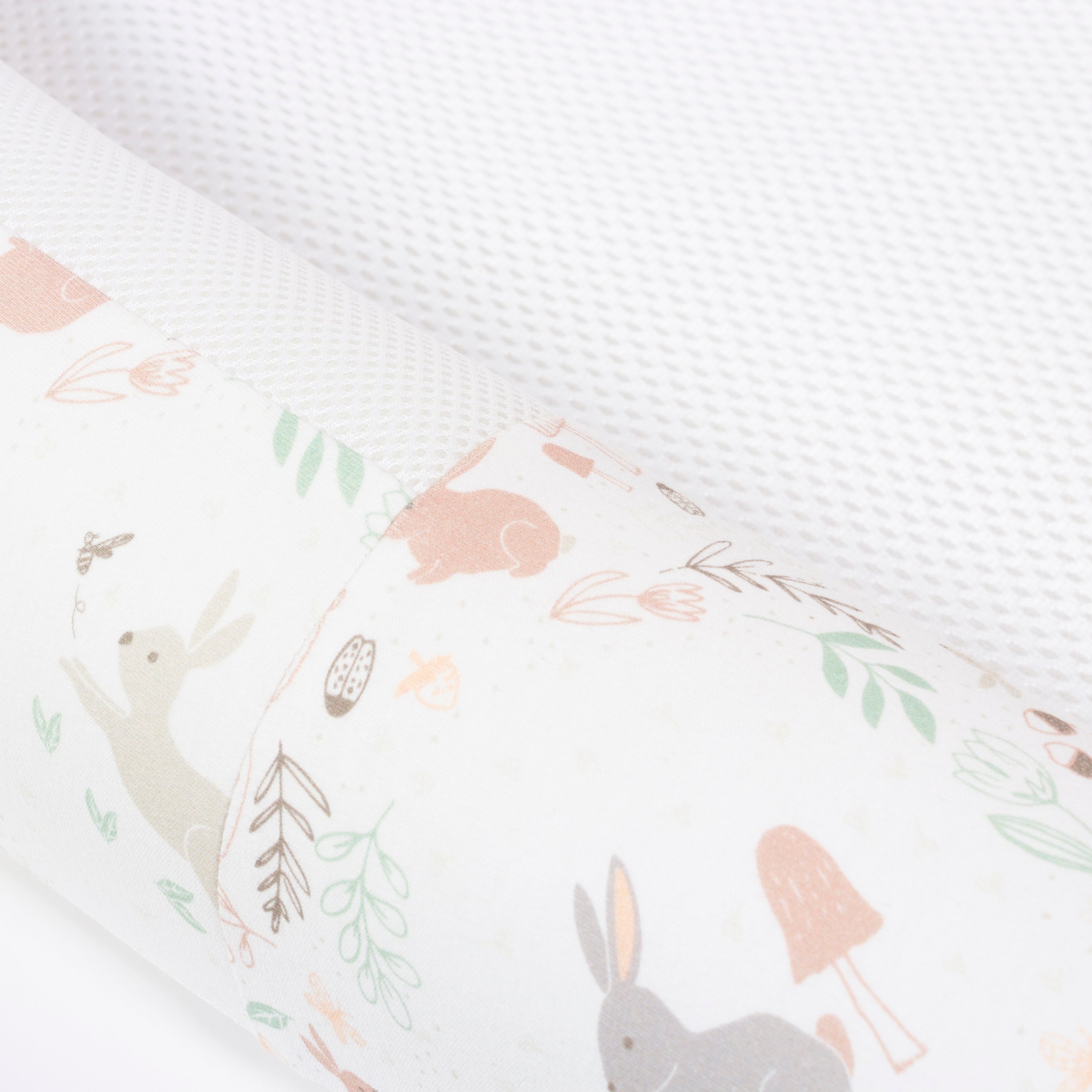 The bed features a fully breathable mesh base and sides which allow air to safely circulate, so baby can breathe easily and stay at a safe temperature all night. The raised sides have just a little bit of squidge - they are firm enough to prevent a little face pushing into them, but cosy enough to give baby sensory feedback and a feeling of being held, helping them to sleep for longer. The super safe sides are made using a sustainably sourced fibre, Dupont™ Sorona® that is made from 37% plant based ingredients and is Oeko-Tex® 100 Class 1 Certified. Purflo found a glue that is non-toxic, safe for babies and the environment and that withstands daily use, is totally safe and awesome for the environment. If you take off the covers of your Sleep Tight Baby Bed you might see a little of this glue in the inner construction - as it doesn't contain bleach and harmful chemicals it is a natural sand colour.