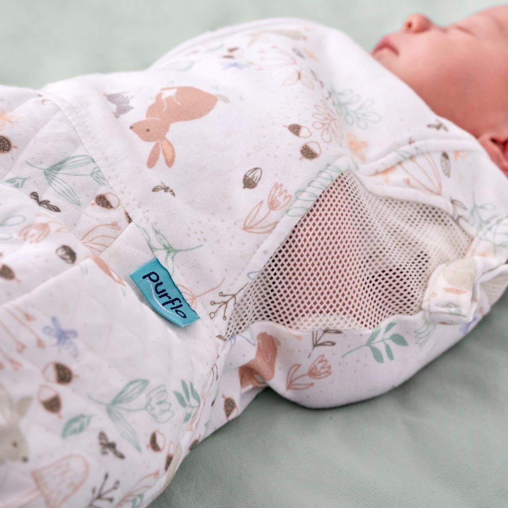 Purflo's innovative new swaddle bag has been developed to offer parents a safer, healthier bedding solution for newborns and young infants. It features unique breathable panels and the option to swaddle arms in or out. The Swaddle to Sleep Bag grows with new babies with an extended length which is certified hip healthy. Longer lasting and safe.