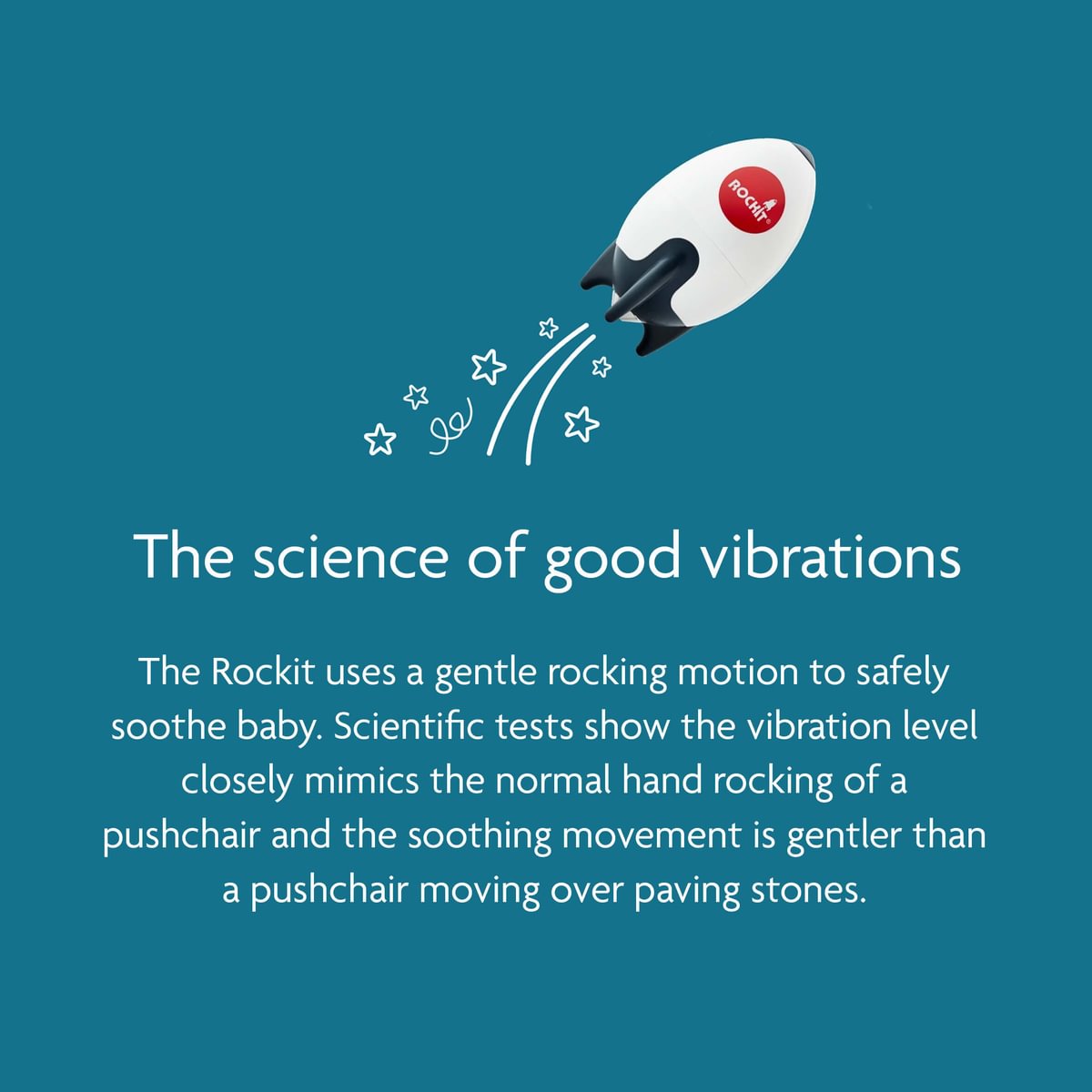 The Rockit uses a gentle rocking motion to safely soothe your baby. Scientific tests show the vibration level closely mimics the normal hand rocking of a pushchair and the subtle yet soothing movement is gentler than a pushchair moving over paving stones.