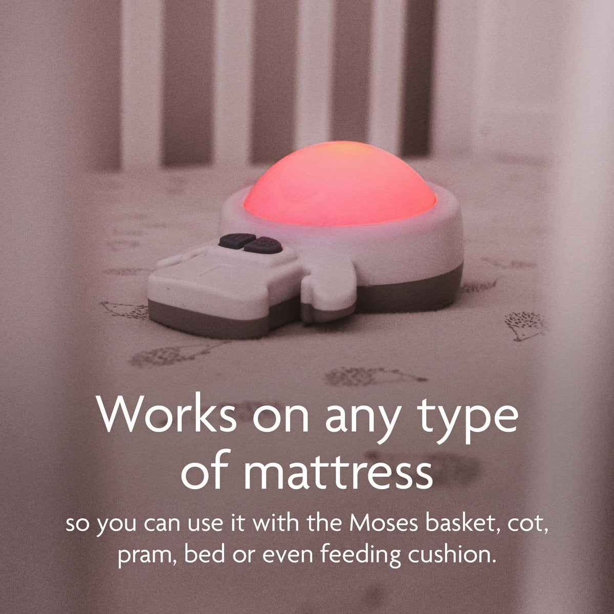 Simply place him by your baby’s feet and the soothing vibrations will ripple through the mattress, comforting them and encouraging a deep sleep.