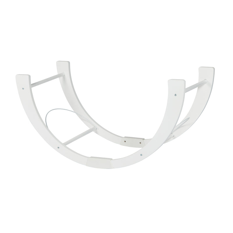 • Fold away white wooden stand can be used in two positions; fixed or rocking