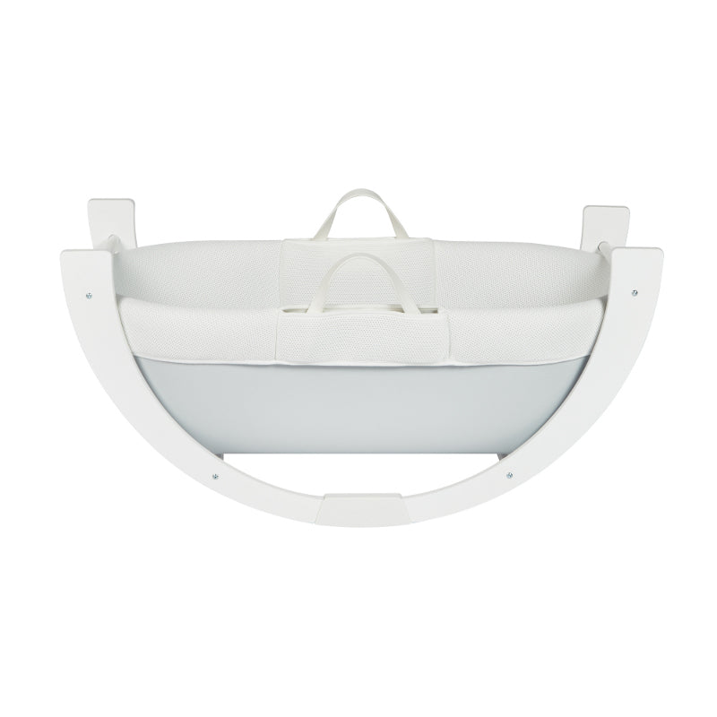 The curve stand that comes with the Dreami can be used in a fixed or low level rocking position. This means you can use it beside your bed or anywhere around your home and gently rock baby is a front to back motion. It is also foldable for travel.