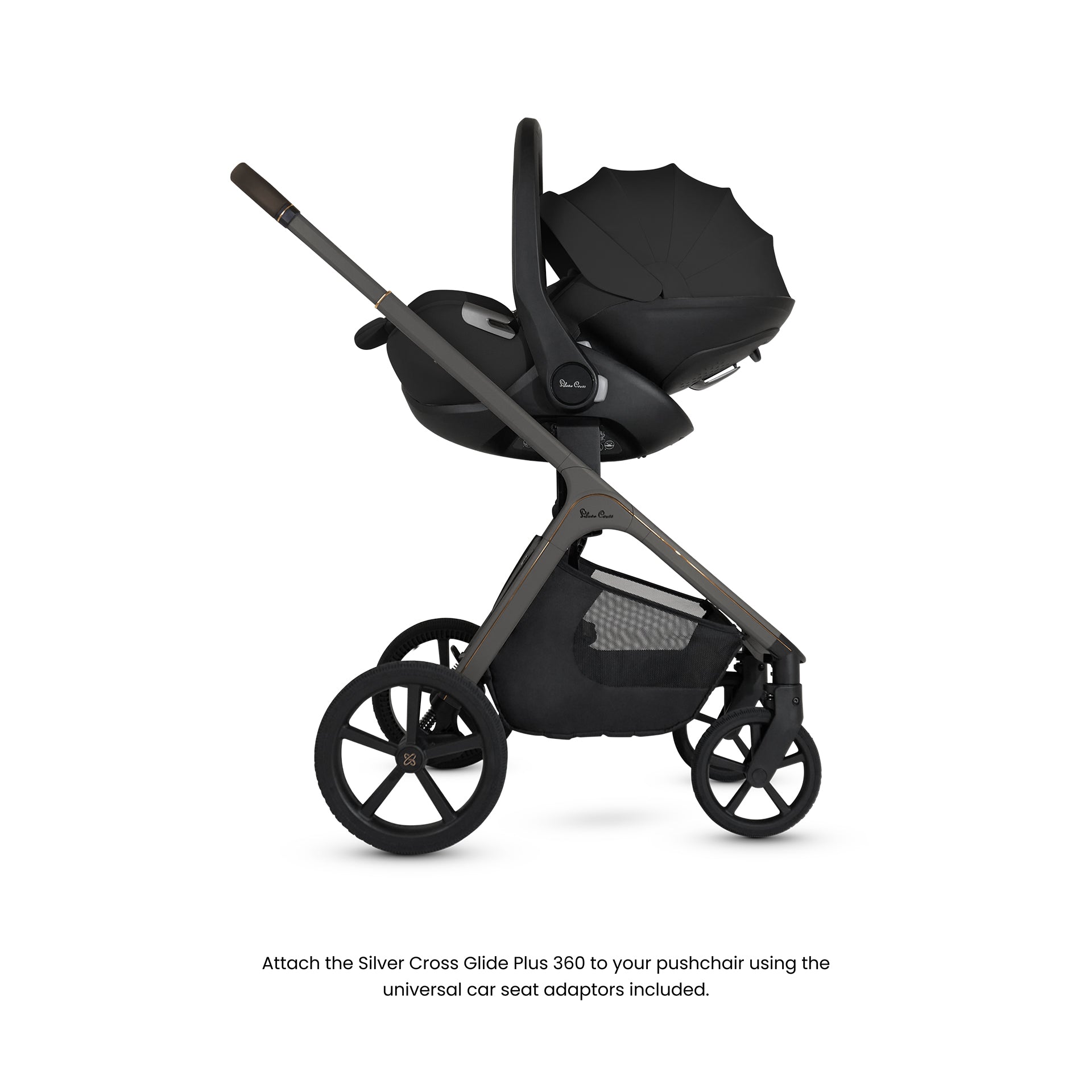 Attach your car seat: Create a complete travel system, perfect for quick trips from car to stroller by attaching the Glide Plus 360 – Silver Cross’ lie-flat infant carrier – to the Cove chassis using the adaptors included. Suitable from birth to 13kg (approx. 18 months),
