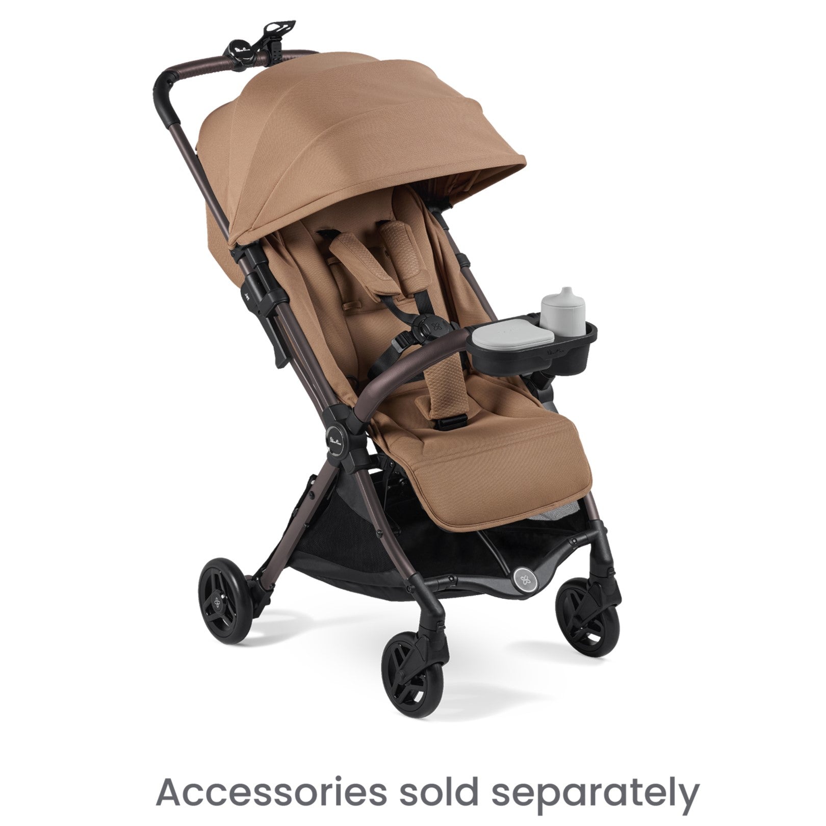 Bigger, durable wheels, premium suspension and a flip-flop friendly brake mean Jet 5 is super easy to manoeuvre, whether you’re strolling through the airport, by the seaside or on your city break. For added convenience when you’re on the move, Jet 5 can be transformed into the ultimate newborn travel system using a Silver Cross Dream i-Size infant carrier and car seat adaptors (sold separately) – perfect for transferring a snoozing baby from car to stroller. Attach the Silver Cross snack tray (sold separately) to Jet 5’s bumper bar to encourage independent eating on the go