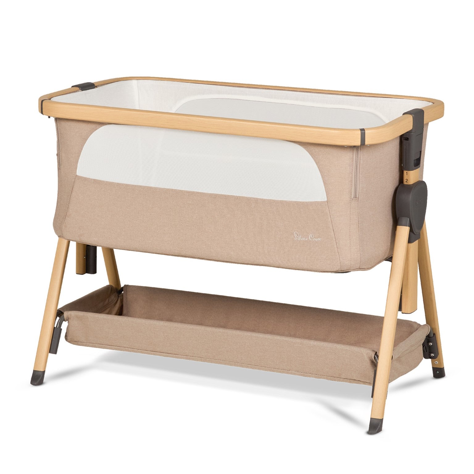 Silver Cross Lunar Bedside Crib - Oatmeal