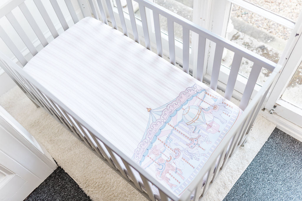 The Gilded Bird Cot/Cotbed Organic Cotton Fitted Sheet - Carousel